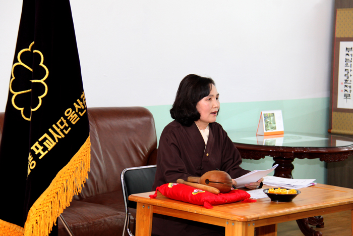국태민안 기원 1만인 계룡산 등반대법회 포교발원문 낭독 모습