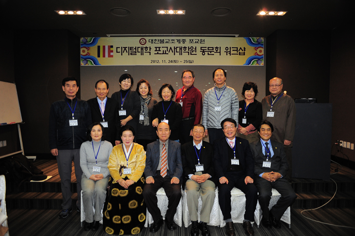- [] 제7차 디지털대학 전문포교사대학원 동문회 워크샾 불기 2556년 11.24-25일 경주 켄싱턴 리조트에서 대웅 김상수 회장님과 정혜 임희웅포교사단 단장님 모시고 20여명의 회원이 1박2일에 전문포교사의 역활 지혜와 능력을 갖춘 포교사로서 전문분야 포교활동에 전법을 서원하였다.