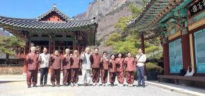 - [충북] 12시30분 충북지역단(단장 한대수,수석부단장 양영미) 사무실 앞 출발하여 증평, 충주를 거쳐 양양 관음성지 낙산사 일주문 앞(4시30분 도착) 조상희 팀장님(증평 호국충용사 군포교2팀)의 홍예문이 보이는 곳에서 낙산사에 대한 포괄적인 문화해설을 듣는다. 흔히 그냥 지나치는 있느지 조차도 모르는 해수관음공중사리탑에서 우요삼잡 탑돌이 인도해 주신 조상희 해설사님께 감사하면서~~~ 7관음상과 뒷편에 1,500존 관음상이 모셔져있는 보타전에 가서 참배 여러 도반들과 함께하니 훨씬 더 관세음보살의 자비가 느껴진다. 보타전을 나오니 옆 언덕에 온통 1,500 관음상이 복수초로 나타나 있었다. 홍련암 가는 길 의상대 앞에서 동해바다 바람에 번뇌 날리기를 ‘잘 했다’ 합장하고 사바하~~~ 홍련암 파랑새를 보셨으면 손을 흔들어 주세요~~~ 늘상 분비던 홍련암만 보다가 저녁 나절의 한적한 모습을 보니 저절로 자유를 느끼는 기분이다. 바다가 보이는 전망 좋은 민박에서 하루밤을 지내고,구름 많음에 일출은 못보았지만 아침 식사 후 제3차 운영위원회의 개최 전 날 열띤 난상토론이 집결되는 회의로 팀활동 결과 보고 및 공유 체계 구축 방안. 조직 내 정보 공유 활성화의 팀 간 협력 및 홍보 효과 증대를 위해 꼭 필요한 것임을 모두 인정하였다. 테라로사 빵공장으로 이동하여 갓 구운 빵과 커피를 마셔줘야 연수 더블어 야유회 1석2조의 효과라 생각 이런 곳이 젊음만의 특권일 수는 없다. 뒤로 돌아 모두 하트 날리기~~ 멀리 관객들의 부러워하는 시선을 느끼며, 언제 어디서든 우리는 도반 그리고 포교사~~~ 아직 피지못한 담쟁이를 우리의 포교 열기로 기필코 피워내리!! 우리는 대한불교조계종 포교사단 충북지역단(단장 한대수) 운영위원!!! 동해 바닷가에 있는 작은 절 감추사로 이동 청주 용화사 기도스님이셨던 비구니 스님의 인연으로, 절에서 주는 차 한잔을 들고 파도소리 바람소리 정다운 바닷가 바위에 올라 각자 나름대로의 명상 시간. 맨발로 용왕님을 친견하는 것도 명상이라지요? 전 날 나왔던 집으로 향하는 길. 미인 폭포가 보이는 고개 정상 정자에서 회향도 여법하게~~~ 인연 중의 인연으로 만남 충북지역단 운영위원님들의 봉사로 포교사의 위상과 팀 활동의 발전을 위하여 다함께 부처님 가르침을 되새기는 자리가 되었다. 충북지역단 발전을 기원하며 1박2일 행사를 감사하는 마음으로 마무리 한다.
