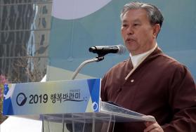 - [포교사단] 선포식서 방창덕 단장 발원문 불교계의 행복나눔 캠페인 을 알리는 선포식이 4월 14일(일) 하오 4시 청계광장 특설무대에서 열렸습니다. 이 날 선포식에는 조계종 총무원장 원행스님, 포교원장 지홍스님, 봉은사 주지 원명스님, 방창덕 포교사단장, 정청현 서울지역포교사단장, 박원순 서울시장, 전 청불회장 유인봉 의원,전 국가대표 농구선수단 허재 감독 등 불자와 시민등 500여명이 참석, 행복바라미 나눔 캠페인의 성공적인 모금활동을 다짐했습니다. 조계종 총무원장 원행스님은 “행복바라미는 행복해지기를 바라는 마음, 이웃과 나눔을 실천하는 정진이며 깨달음의 길로 가는 간절한 수행이다.” 고 말하고 “부처님오신날을 앞두고 펼쳐지는 행복바라미 문화대축전을 계기로 나눔과 행복의 마음이 확산되고 한반도 평화를 앞당기는 소중한 계기가 되길 간절히 기원한다”는 희망의 메시지를 전했습니다. 행복바라미모금활동을 주관하는 행복바라미 이기흥 이사장은 “행복바라미의 취지가 보다 확산되고 행복의 가치가 널리 실현되는 새로운 희망의 마중물이 되기를 바란다”취지를 설명했습니다. 6년째 나눔축전에 참가하고 있다는 박원순 서울시장은 “제1회 문화축전에 참석한 이후 올해까지 매년 참석, 나눔문화가 불교계을 넘어 사회적 소통수단으로 정착되어가는 과정을 지켜보고 감동을 받았다”고 만족감을 표시하고 “세금만으로는 다 채울 수 없는 빈 공간을 채워주는 효과적인 대안으로 앞으로도 큰 기대를 갖고 있다”고 감사를 표했습니다. 거리모금활동의 최일선에서 활동하는 포교사들을 대표하는 포교사단 방창덕 단장은 발원문을 통해 “오늘 이 자리에 함께한 우리들은 자신과 세상을 정화하며, 힘들고 고통받는 우리 이웃들을 내 몸과 같이 보살펴야 하는 사명을 실현하기 위하여 다음과 같이 발원합니다. 이 땅의 모든 이가 자비를 실천하여 정의롭고 평화로운 사회가 되기를 기원합니다. “라고 말했습니다. 2013년 4월 29일 불교계 최초의 이웃돕기 모금활동으로 시작한 행복바라미축전은 6년이 지나는 동안 불교계의 대외 나눔 창구로써의 소통과 나눔눔 역할을 다해오있다는 평가를 받고있습니다. 선포식이 끝난후 불교상담개발원장 선업스님이 지도하는 명상시간 체험, 손담비의 안무를 따라하며 부르는 ‘미쳤어‘로 벼락스타가 된 지병수 할아버지, 국악인 남상인의 흥겨운 공연도 열렸습니다. 올해의 거리모금은 오는 4월 27일까지 전국 21개 지역, 508개 모금소에서 전국의 포교사들에 의해 펼쳐집니다.