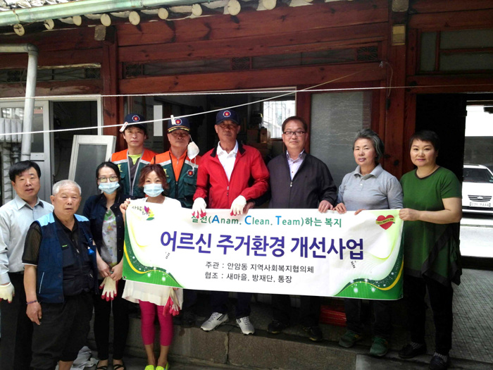 - [좋은인연] 성북구 안암동 지역복지협의체에서 실시하는 ‘어르신 주거환경 개선사업’이 2014년 4월 30일 수요일 10시에 있었다. 사)좋은인연은 이 행사에 합류하여 독거어르신의 집 청소 등 쓰레기 일체를 치우는 작업을 하였다. 이날은 일차적으로 두 가구를 청소하였는데, 이 중 한 어르신의 집이 사)좋은인연에서 실시하고 있는 ‘반찬나누기’의 반찬을 공급받고 계신 분이었다. 봉사활동에 참여한 봉사자들은 일반 쓰레기와 재활용 쓰레기를 일차적으로 분리해서 치우고 산더미처럼 쌓인 빨래는 주민센터에서 실시하는 빨래도우미에 보냈으며, 부엌청소, 옷정리, 생활용품의 정리까지 깔끔하게 끝냈다. 집을 청소하고 나니 어르신께서도 뿌듯하신 것 같았고, 봉사자들도 변신된 집을 보고는 놀랍다는 생각을 하였다. 그렇게 많은 쓰레기 더미를 언제 치우는가? 싶었는데 여러 사람의 손길이 닿으니 빨리 끝나고 깨끗해 졌으니 놀라웠던 것이다. ‘어르신 주거환경 개선사업’의 대상이 되는 어르신의 선정은 주민센터의 사회복지과에서 이 지역의 독거어르신의 집을 방문하면서 주거환경이 가장 열악한 분들을 선정한 것이다. 사)좋은인연에서는 주거환경 개선의 대상이 되는 어르신들의 환경을 쾌적한 상태로 만들어 드린 후 심리적인 안정을 찾아드리기 위해서 주기적으로 말벗 봉사자를 파견하는 복지활동을 실시하기로 하였다.