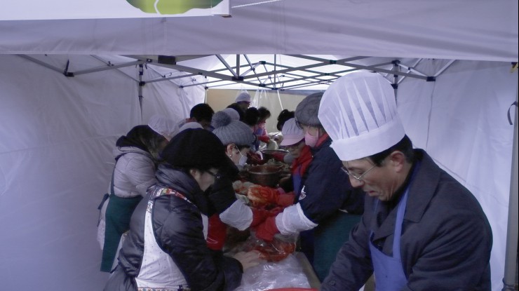 - [좋은인연] 함께 나누어 행복합니다 바람에 떨어지며 흩날리는 낙엽을 바라보고, 낙엽도 밟아도 보면서, 한해를 보내는 겨울 초입에서 종일 눈발이 흩날리는 가운데, 좋은인연(이사장 곽명희)은 2015년 11월 26일 10시 성북구 안암동 주민센타에서 ‘사랑의 김장나누기’ 행사를 가졌다. 소외계층의 건강한 겨울나기를 위해 마련한 이번 행사에는 ‘좋은인연’회원, 포교사단 전임단장단 모임 ‘수메다’회원, 포교사단 임원진, 성북구 서강덕 안암동장과 윤만환 구의원 등, 50여 명이 동참했다. 이번에 만들어진 김장은 성북구 관내에 거주하는 독거노인, 소년소녀가장, 청소년가장 등 형편이 어려운 150여 가정에 전달한다. 좋은인연은 2006년 창립 첫해부터 매년 성북구 관내에 거주하는 형편이 어려운 소외계층 가정을 대상으로 ‘사랑의 김장나누기’ 행사를 시행해 왔다.