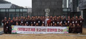 - [포교사단] 대한불교조계종 포교사단은 불기2570(2026)년 2월 3일 10시 30분부터 15시 까지 포교사단 설법전에서 전국 지역단 사무국 직원들이 참석한 사무국 연수를 시행했다. 포교사단 제14대 출범 후 각 지역단 사무국 직원들이 연임 또는 신규로 직무를 수행하게 되어 본단 사무처 주최로 원활한 업무 수행과 소통을 위한 교육연수를 개최하게 됐다. 지역단 사무국 업무 활성화, 사무국 신입 사원 입사, 포교사단과 지역단의 네트워크 구축을 추진배경으로 사무행정 통일화와 안정화, 전국 지역단 행정 공유를 목적으로 실시된 연수에는 사단 박은호(법경) 부단장이 참석해 멀리서 연수를 위해 방문한 사무국 직원들을 격려했으며, 연수 종료까지 함께했다. 회계와 행정 두 파트로 나누어 진행된 연수의 첫 시간은 포교사단 사무처 한창희 과장의 회계 관련 교육 및 회계프로그램 사용에 대한 교육이 진행되고, 중식 후 사단 사무처 이성학 처장의 행정관련 업무에 대한 교육과 종단 종법, 종령 그리고 포교사단 정관에 대한 교육이 이뤄졌다. 실무자들의 교육인 만큼 애로사항과 질문들이 많이 나왔으며, 사무 처리에 대한 노하우와 실무행정 지침을 정리하고, 각 지역단과의 소통을 위한 유익한 자리가 됐으며 참여열기가 뜨거운 연수가 이뤄졌다. 사홍서원을 끝으로 짧지만 유익했던 연수를 모두 마치고 각자의 지역단으로 향했다.