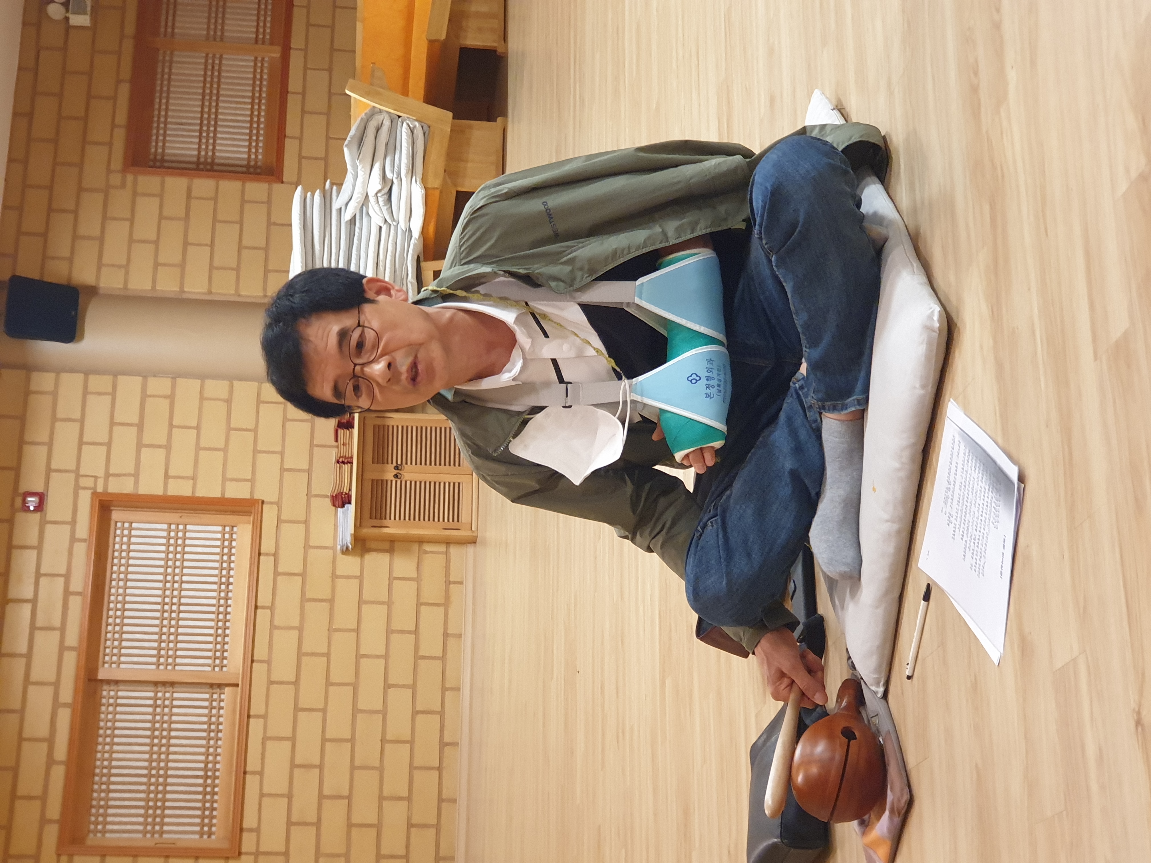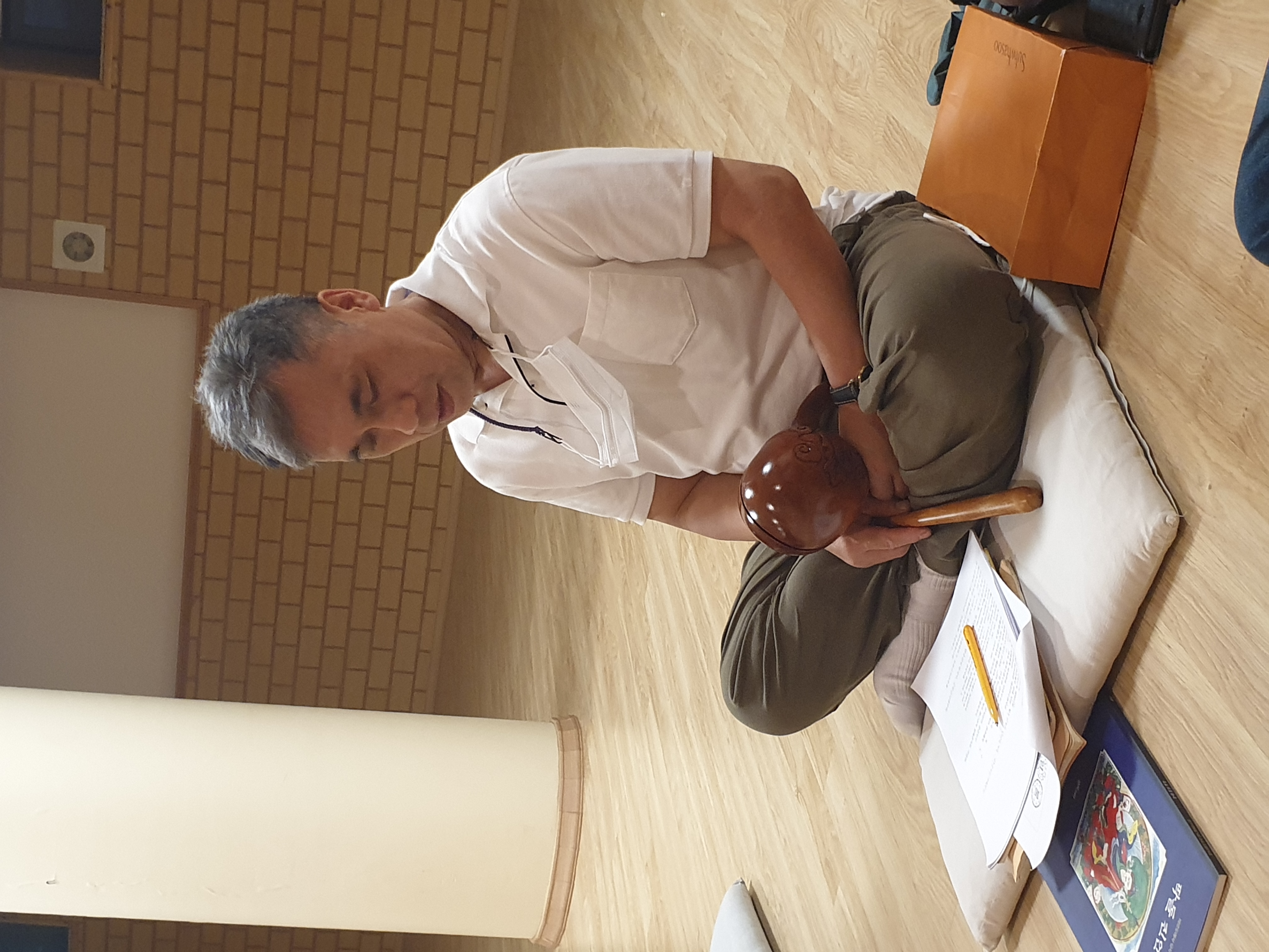 법광 이춘훈 팀장님의 공지사항 전달하였으며, 6월28일 통도사에서 진행하는 포교사 분야별연수에 전원 참석해 달라는 부탁이 있었으며, 명산 황영규님의 목탁에 맞춰 삼귀의(한문본), 반야심경(한문본)을 시작으로 조문염불시 집전,바라지,합창,목탁, 요령사용에 대하여 구분 설명해주셨고, 반야심경, 신묘장구대다라니경 독송법을 리듬감있게 소리 맞춰보는 수업을 하였으며 개인별 맞춤 수업도 빼놓지 않고 진행해주셨다.
