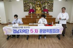 - [경남] 일시 : 2020년 8월 8일(토) 14:30 장소 : 지역단 사무실 제25회 포교사고시 1차합격자 연수교육 지원과 함께 경남지역단 제5차 정기 운영위원회를 개최 하였습니다. 성원보고 및 개회선언 ,삼귀의례등 절차에 따라 진행 되었고 단장 인사말,경과보고,2020년 상반기 감사보고, 재무보고,안건심의 등 순서로 진행하였습니다. 심의 안건으로 1.2020년 지역단 예산 변경안 건. 2.분야별 연수 실시변경건. 기타토의 및 공지 사항 전달과 사홍서원으로 제5차 정기운영위원회를 종료했습니다.
