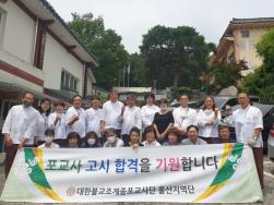 - [울산] 지난 7월 11일 오전 11시30~12시에 정토사에서 이번 25기 포교사 응시생들을 위한 격려의 시간이 있었습니다. 울산에서는 정토사에서 8분,황룡사에서 3분이 응시를 하셨습니다. 정토사 회주 덕진스님께서 응시하시는 분들을 위한 덕담과 격려의 말씀을 해주셨습니다. 24기 포교사들이 정성스럽게 떡,음료, 간식거리, 물티슈,컴퓨터펜까지 준비해주셨습니다. 함께 고사장으로 가시는 분들을 위한 음료도 준비해주셨습니다. 정토사에서 공부하신 분들은 강학수 포교사단 감사님이, 황룡사에서 공부하신 분들은 이병연단장님이 직접 운전해주셨습니다. *참석자:이병연 단장님, 강학수 포교사단 감사님,정연숙 수석부단장님, 이영우 부단장님,김무용포교사님, 조성남 간사님, 홍보 최재연, 24기포교사(권혁규,손수정,김태진.권영심,권영현,조현숙,김홍련,남승진) 정토사 회주 덕진 스님의 격려 말씀 24기가 준비한 정성가득한 간식들~ 시험 치느라고 고생하신 응시생들을 위하여 6시~8시에 유림뼈해장국(청보리팀장영진,김규림) 모여서 저녁식사시간을 가졌습니다. 맛있는 음식을 먹으며 시험에 관한 담소와 격려의 이야기를 나누었습니다. 참석하신 이병연단장님과 강학수 포교사단 감사님의 격려를 시작으로 자리를 함께 해주신 운영위원들의 소개와 인삿말을 들었습니다. 이번에 응시하신 분들을 지도하신 강학수님과 황보한님께서 인삿말과 응시생들의 학업에 관한 열정과 성과를 칭찬해주셨습니다. 묘각님(문수팀. 정토사총동문회 회장)께서 정토사에서 주시는 격려금과 정토사총동문회에서 주시는 격려금을 전달해주셨습니다. 24기 포교사 두분(김홍련,이재영)도 후배기수를 격려해 주셨습니다. 25기응시생중에 대표로 이상길님께서 인삿말을 해주셨습니다. 맛있는 식사가 끝나고 이병연단장님과 강학수 포교사단 감사님과 응시생 김은아님의 건배제의로 멋진 건배를 하며 식사시간을 마쳤습니다. 응시생분들 시험치시느라고 고생하셨고 좋은 결과 있으시길 바랍니다. 함께 해주신 분들 수고많으셨습니다. 맛난 음식을 해주신 김규림포교사님 맛있게 먹었습니다. *참석자:25기 응시생, 이병연 단장님, 강학수 포교사단 감사님, 정연숙 수석부단장님, 이영우 부단장님, 조원석 총괄1팀장님, 박민재 총괄2팀장님, 최나영 청보리팀장님, 황보한 불광팀장님, 문수팀 전기택(정토사총동문회 회장)님, 홍보 최재연, 보현팀 이재영님, 청보리팀 김홍련님 이병연 단장님 사회를 맡으신 이영우 부단장님. 정토사 응시생을 지도하신 강학수 포교사단 감사님. 정연숙 수석부단장님. 박민재 총괄2팀장님. 조원석 총괄1팀장님. 황룡사 응시생을 지도하신 황보한 불광팀장님(선관위원) 최나영 청보리팀장님. 문수팀 전기택님께서(정토사 총동문회 회장) 정토사와 정토사총동문회에서 주신 격려금을 전달해주셨습니다. 청보리팀 김홍련24기 포교사님,보현팀 이재영 24기 포교사님. 맛있는 음식을 해 주신 청보리팀 김규림포교사님. 25기 응시생 이상길님 25기 응시생 김은아님.