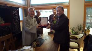 - [인천경기] 대한불교조계종 포교사단 인천경기지역단 신호승 단장님 이하 임원진과 포교사들은 불기 2563(2019)년 포교사 전진대회를 맞아 지역단의 발전을 위한 포교활동에 물심양면으로 관심과 격려를 지속해주고 계신 문수산 용인 법륜사 주지 현암스님을 찾아 뵙고 소속 포교사들의 마음을 담아 감사패를 전달해드렸습니다.
