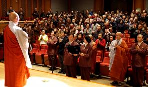 - [포교사단] 한해 동안의 포교활동을 돌아보고 새해(경자년)의 나갈 방향을 모색하는 송년회겸 전진대회에는 포교원장 지홍스님, 포교국장 무일스님,신도국장 혜안스님과 방창덕 포교사단장, 정청현 서울지역단장이 참석, 개회선언-삼귀의-반야심경- 포교사의 다짐-포교원장 격려사-지역단장 인사-포교활동 유공자 표창-총괄팀별 장기자랑-무소유실천운동본부의 새터민 후원금 전달- ‘아이연탄맨’연탄나눔 후원금 전달-사홍서원 순으로 진행되었다. 포교원장 지홍스님은 “포교사들의 한해동안 노고를 치하한다. 급변하는 신행환경 속에서 살아남기위해서는 화합과 협력으로 변화에 응전해야 한다. 가보지 않은 길이 두렵지만 피해서는 안된다”고 능동적인 대처를 당부했다. 서울지역단 정청현 단장은 “혼돈의 지난 1년을 돌아보며 재발심의 좋은 기회로 삼자. 새해 포교사 여러분의 가정에 평화와 행복이 가득하기를 축원한다”고 덕담을 말했다. 방창덕 포교사단장은 축사를 통해 “한해를 마무리하며 각처에서 활동중인 포교사 여러분 수고많았다”고 격려하고 “포교사단 출법 20주년을 맞는 새해 경자년에도 우리 스스로 선택한 포교사의 길에 신바람 나고 활력 넘치는 포교사단을 만들어 가자“고 격려의 말을 전했다. 포교활동 유공자 표창에서는 서울지역단장 표창 5명,포교사단장 표창 3명, 포교원장상 1명, 포교사단 총재상 1명, 디지털대학장 상 1명이 각각 상과 표창을 받았다. 장기자랑에서는 직할총괄팀이 단합을 보여주는 ‘용춤’, 북부총괄팀이 연화무 ‘연꽃피어오르리, 서부총괄팀이 각설이 타령,동부총괄팀의 사물놀이 공연, 남부총괄팀의 마술공연과 가요열창을 보여주었다. 끝 순서로 무소유실천운동에서 새터민후원, ‘아이연탄맨’의 연탄나눔 후원, 이주민지원단체단체 지원금을 각각 전달하는 것으로 송년의 의미를 되새겼다. 사진-글/서울지역단 홍보위윈 이기룡(해륜)