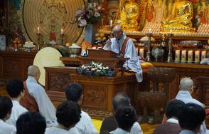 - [포교사단] 대선사들의 명품해설 《무문관無門關》선문답 – 삼보사 지안 대선사 인간 실존에 대한 본질적이고 근본적 질문과 그에 대한 해답을 찾으려는 불교수행법의 한 갈래인 조사선 참선수행의 길잡이인 조주선사의 《선종무문관無門關》의 핵심 공안을 우리시대 최고의 선사禪師들이 해설하는 연속 7회 특별법회의 3회차 법회가 10월 6일(일) 서울 삼보사(서울 은평구 진흥로99-4)법당에서 열렸습니다. http://www.sambosa.or.kr/ 02-352-6406 당초 선문답 4번째 순서에서 3번째로 앞당겨 오른 삼보사 회주 지안스님(전 포교원장)은 “마침 우리 절 창건 31주년이라 순서를 앞당겼다”고 연속법회 일정 변경 사유를 설명하고 양해를 구했습니다 법문 주제인 에 대해 지안스님은 “불자라면 누구나 다 알고 있는 중국불교의 초조인 대선사로, 턱수염이 얼굴을 반쯤 가린 달마대사를 ‘수염없는 오랑캐’로 일축한 혹암或庵(1108-1179/원오극근 선사의 법손으로 육조단경 저자)의 진정한 의도는 ”선문답은 이론이이나 가르침만으로 깨우칠 수 있는 게 아니며, 또 초조 달마대사의 가르침이라고 해서 무조건 수용해야하는 우상화의 함정에 빠지지 말고, 자신만의 깨우침을 구하라고 설파하기 위한 일종의 역설적 레토릭으로 이해 할 필요가 있다“고 설명했습니다. 따라서 달마대사로 대표되는 고승대덕의 위업이나 명성을 무조건적으로 추종하는 대신 자기 스스로의 수행을 통한 각성이 필요하다고 설명했습니다. 선문답의 특징은 스승과 제자간의 질의응답을 통해 화두를 들고, 그 해답을 찾아가는 수행과정의 상호작용을 전제로 하는 것이지 어느 일방적 가르침이나 지시로 얻어지는 것은 아무런 가치가 없다는 점도 아울러 강조했습니다. 조사선에서 중요한 몫을 차지하는 선문답에 대해 지안스님은 “선문답 하나하나에는 몸소 체험한 스승과 제자 사이의 진지한 구도 정신이 녹아있는 까닭에 어느 하나도 ‘언어유희’이거나,‘음푼농월’의 문답이 결코 아니다”고 강조하고 세존의 염화와 가섭의 미소로 상징되는 이심전심의 경지를 설명하는 을 예로 들었습니다. 깨달음을 얻은 부처님이 영축산에서 첫 대중 법회를 열며 대범천왕이 올린 꽃을 들어 올렸을 때 아무도 그 뜻을 헤아리지 못했으나 가섭존자만이 그 뜻을 알아차리고 미소를 지었다는 , 대중집회 때 늦게 도착해 좌석이 없는 가섭에게 자신의 자리를 반쯤 내주었다는 , 부처님 입적후 1주일이 지난뒤 늦게 도착한 가섭을 위해 관 밖으로 발바닥을 내밀어 보여주었다는 를 예로 들어 불교수행에서 ‘문자이전’의 ‘이심전심’의 상호작용의 중요성을 여러차레 강조했습니다. 부처님의 가르침의 위대함은 인류 역사상 최초로 깨달음을 ‘행위예술’로 보여주었다는 것이다 라고 설명한 지안스님은 “세존은 꽃 한송이로(拈花) 정법안장正法眼藏(깨달은 진리), 열반묘심涅槃妙心(깨달음의 세계), 실상무상實相無相(법의 실상은 모양이 없다), 미묘법문微妙法門(오묘한 불법에 들어가는 문)을 가섭에게 전하므로써 ‘이 세상은 마음의 꽃으로 장엄된 아름다운 세계’라는 것을 가섭을 통해서 설파했음을 들려주었습니다. 대선사 초청법회를 마련한 삼보사 회주 지안스님(전 조계종 포교원장)은 “불법을 전하고 실천하는 누만累萬의 수행법 가운데 조주스님이 찾아내고 성행시킨 조사선祖師禪의 참선 수행법이 최고라고 생각한다.”고 자신이 역해본譯解本을 펴낸 이유를 설명했으며, 이렇게 중요한 무문관 핵심사상을 우리시대 최고 선사들의 육성해설로 듣는 특별법석을 펼치는 이유를 “수영이나 골프를 시작하는 사람이 훌륭한 코치의 레슨을 받아 기량이 일취월장 하듯, 대 선지식의 지도아래 실참實參하면 누구나 생각을 크게 변화 시킬 수 있고, 또 행복해 질 수있기 때문이다”이라고 설명했습니다. 우리시대 최고의 선승禪僧들의 깊이있는 해설과 실참으로 체득한 경험측으로 듣는 7회 연속법회일정은 다음과 같습니다. 제1차 법회 (9/22 삼보사) 제2차 법회 (9/29 삼보사) 제3차 법회(10/6) 삼보사) 제4칙 법회(10/13)삼보사) 제5차 법회(10/20 삼보사) 제6차 법회(10/27 삼보사) 제7차 법회(11/3 삼보사)