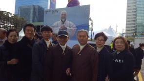 - [제주] 불기2563년 부처님오신날 연등축제 대법회가 5일 오후 6시부터 제주시 탑동광장에서 열렸습니다. 이날 행사에서는 '마음愛(애) 자비를! 세상愛(애) 평화를!'을 주제로 타종5추, 삼귀의, 찬불가, 반야심경 봉독, 축원문 낭독, 대회사 및 봉행사, 주요인사 축사, 발원문 낭독 등으로 진행되었습니다. 허운 스님은 대회사를 통해 "우리가 돼 서로의 다름을 인정할 때 평화가 찾아온다"며, "부처님은 어리석음에서 벗서나 깨달음에 이르는 길을 가르쳐 주셨다. 그 길 위에서 우리는 너와 내가 따로 없는 이웃이며, 동반자이다"라고 하면서 "나를 존귀하게 여기듯이 남 또한 존귀한 존재임을 알아야 한다. 우리 가족의 행복이 소중하듯이, 이웃의 행복이 소중함을 알아야 한다"고 강조했습니다. 축제 후에는 자리에 함께한 신도들이 각자 준비한 제등, 장엄물 등과 함께 탑동광장을 출발해 산지천, 동문로터리, 중앙로터리 산지천으로 행진을 했습니다. 많은 포교사의 참석으로 장엄한 행렬 속에 함께 할 수 있었습니다_()()()_