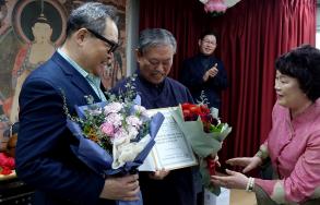 - [포교사단] 대한불교조계종 10대 사단장 보궐선거에서 향천 방창덕(68) 포교사가 앞도적인 찬성표를 얻어 포교사단장으로 당선되었습니다. 4월 11일(목) 낮 포교사단(서울 중구 동호로 24길 27-17 우리함께빌딩 5층)에서 열린 10대 사단장을 뽑는 보궐선거에서, ‘단독 입후보자인 경우 찬-반 투표로 결정한다’ 선거법 규정에 따라 전체 대의원 37명중 압도적인 찬성표를 얻은 방창덕 포교사(포교사단장 직대)가 10대 포교사단장으로 당선, 중앙선거관리위원회 임덕신 위원장으로부터 당선증을 받았습니다. 재석 26명중 22표(85%지지)를 얻어 당선을 확정지은 방창덕 단장은 “포교사단 현재의 사태를 엄중하게 인식하고, 인생의 마지막 봉사의 기회로 삼아, 유종의 미를 거둘 수 있도록 최선의 노력을 쏟아 부을 것“이란 각오를 발혔습니다. 육군 제3 사관학교를 나와 1973년 소위로 임관한 방사단장은 1973년부터 전-후방 부대에서 초-중 급지휘관을 거쳤으며, 현역복무의 바쁜 생활 속에서도 주경야독으로 면학에 힘써 석사학위를 받은 예비역 중령입니다.전역 후 공-사기업체의 CEO 및 임직원을 두로 역임했으며, 포교사(제16기 및 9기 전문포교사) 경력으로는 팀장 2년반-총괄팀장-지역부단장 및 지역단장 등 운영위원 6년 동안 다양한 포교현장의 이론과 실무를 익혔으며, 무엇보다 원만한 인성으로 따르는 이가 많은 것으로 알려지고 있습니다. 방 신임 포교사단장은 “신바람 나는 포교사단을 만들겠다”는 목표를 밝히고 구체적인 실천 방안으로는 “사단과 포교일선 현장에서 느끼는 간극을 줄이는 소통과 적극적으로 참여하는 방안을 구하기 위해 작은 것부터 실천에 옮길 것이며 지금까지 이루지 못한 미완의 공약을 빠짐없이 챙겨 나갈 것, 아낌없는 협조와 응원을 보내달라”고 주문했습니다. 신임 방창덕 사단장은 전임 사단장의 잔여 임기까지 포교사단장으로 집행부를 이끌며, 오는 10월말(또는 11월 초) 실시되는 11대 포교사단장 선거 총괄업무를 수행하게됩니다. 단장 선거후 열린 4차 운영위원회 회의에서는 정청현, 김위영, 김영석, 여갑동 포교사를 부단장으로 인준했습니다. 사진-글/ 포교사단 홍보위원 이기룡(해륜)