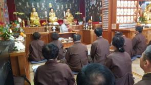 - [제주] 제주시 총괄팀 3월 법회 및 상조회 정기총회 날짜 : 불기2563년3월16일(토)오후5시 장소 : 천진암 (오라이동) 주관: 제주시 군포교팀 (팀장 김철훈(보조)) 1부 수행법회 사회는 군포교 총무 김은정(심불심)포교사님이 목탁집전은 한좌인(수보리)포교사님이 여러 포교사님들과 함께 예불 천수경을 독송하고. 식순으로 삼귀의. 반야심경.법문순으로 김문홍 지역단장님과 오태숙(대성)전 단장님 이태섭(원전)교정팀장님 김철훈(보조)군포교팀장님 김영매(원명화)사찰팀장님 신봉인(보현행)염불팀장님 등 제주시총괄팀 여러 포교사님들과 천진암에서 법사 청계스님을 모시고 여법하게 법회가 이루어졌습니다 청계스님 법문에 여러 포교사님들이 수행 하는데는 도량.스승.도반이 중요하다고 하시고 소와 사자의 예를들어가며 출가자는 법보시를 재가자는 재보시 등 방향성의 중요성에 대한 법문을 해주셨습니다. (총괄팀법회는 분기별 각팀이 법회 주관 하기로하였습니다.) 2부 상조회총회는 사회는 총괄팀총무 문금란(무상정)이 진행으로 강윤호(원정)총괄팀잠님 인사말씀 과 김문홍(도법) 지역단장님 격려사 18년도 사업및 연수경과보고하고 19년도 사업 및 예산 건과 부의안건 승인건 기타 등 강상순(향림)제주시상조회 감사님이 상조회 감사보고 하였습니다. 사홍서원을 끝으로 여러 포교사님들이 많은관심과 성원으로 올해 첫 법회와 정기총회를 여법하게 모두 마무리 잘 하였습니다. 저녁식사장소. 한촌 설렁탕