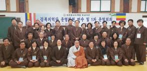- [경북] 2019. 1. 20(일) 10:00 대한불교조계종 포교사단 경북지역단 운영위원 연수가 대한불교조계종 제8교구 본사 직지사(주지 법보스님) 천불암에서 봉행되었다. 남부총괄팀장의 집전으로 입제와 지도법사 도신 스님의 특별법문 , 이희철 단장 인사,장한상 자문위원 격려사,총괄 팀장 및 신임팀장. 교육위원 임명장 수여가 있었다. 특강으로 이희철 단장의 2019년 운영방향, 강의수 수석 부단장의 포교활동팀의 구성 및 팀장의 역할, 박삼수 교육위원의 포교사로서의 삶과 포교사단 정관의 이해의 특강이 있었다. 이희철 단장은 인사말에서 팀장 및 리더로서 어떻게 포교활동을 해야 하는지를 한번 더 생각 해 주면 좋겠으며 특히 2019년 경북지역단 운영지표는 “내리고. 버리고. 비우고 붓다로 살자” 이며, 지난해의 운영 지표는 “윤리포교.행복포교.가치포교”였으며, 윤리포교는 포교활동을 하는데 윤리적이지 못하면 가치를 느끼지 못하고, 행복포교는 스스로가 행복하지 못하면 포교활동을 해도 행복을 느끼지 못한다고 했다. 나 자신 스스로가 좋아서 포교사가 되었고, 부처님을 믿게 되었으면 스스로 가치를 찾아 수행을 해야 한다고 했다. 물론 수행의 뒷 받침이 될수있는 것이 “내리고 버리고 비우고 붓다로 살자”이며 , 올해는 이 세 가지 중 한 가지라도 목표를 세워 실천하면 좋겠으며 그 동안의 모든 잘못은 단장이 다 안고 갈 것이며, 2019년은 밝은 마음으로 웃으며 나를 버리고 깨닫는 그런 한해로 9, 10대가 잘 마무리 되었으면 좋겠다고 했다. 오늘 연수가 끝나면 팀원들 한테도 연수 내용을 잘 전달해서 팀원들과 함께 할 수 있는 2019년도가 되었으면 한다고 했다 . 이어진 제1차 운영위원 회의는 36명의 위원이 참석한 가운데 감사보고. 안건심의, 공지사항 순으로 진행되었다.