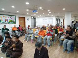 - [울산] 올해의 마지막봉사가 지난 12월1일에 연화원에서 있었습니다. 먼저 건강하신 모습으로 저희와 즐거운 시간을 보내주신 연화원어르신들께 감사의 인사를 드립니다. 내년에는 더 즐겁고 건강하게 함께 하시길 기도드립니다. 법회하는 시간에 뒤에서 들려오는 낮은소리의 천수경소리가 참으로 흐뭇했습니다. 신명나는 장구로 흥을 돋우워 주신 특별 게스트(김선희민요학원의 조금호님, 심규인님) 들께도 감사드립니다. 함께 해준 선우팀회원들! 내년에도 더 열심히 횟팅합시다. (참석자: 대혜성,학운,진성,보리향,수인경,금감장) 수인경/최재연 자원봉사 선우팀