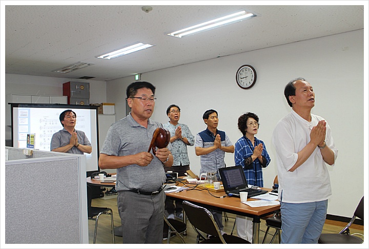 - [경북] 2018. 9. 3(월) 19:00 단 사무실에서 임원회의가 개최 되었다.남부총괄팀장의 집전으로 예불의식 후 이희철 단장의 인사와 경과보고 및 심의안건,공지사항,사홍서원 순으로 진행되었다. 이희철 단장은 신입 포교사들이 입단하는 즈음 "우리는 선배 포교사로서 귀감이 되는 포교사가 되자" 는 당부의 말씀이 있었다.