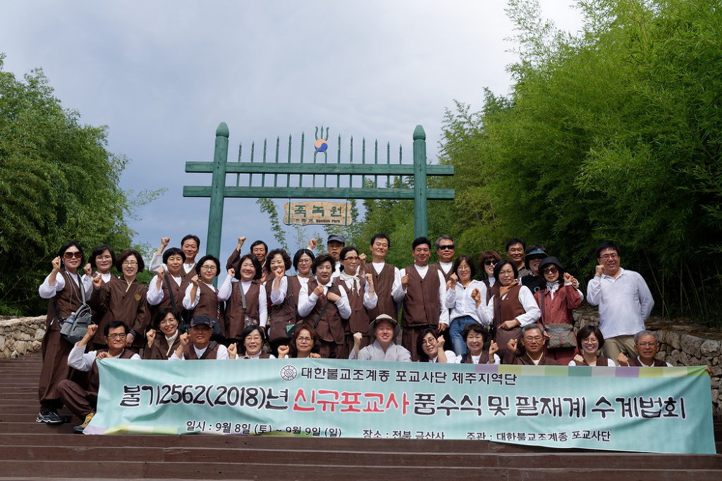- [제주] 불기2562(2018)년 9.8(토) ~ 9.8(일) 대한불교조계종 포교원이 주최하고 대한불교조계종 포교사단이 주관하는 포교사 품수식 및 제18회 팔재계 수계법회가 대한불교조계종 제17교구 본사 김제 금산사에 전국의 포교사 3천5백 여명이 참석하여 봉행되었습니다.제주지역단(단장 김문홍)은 포교사 품수식 및 팔관 재계에 85명의 포교사들과 참석하여 다시 한번 포교의 원력을 다지고 자신을 점검 하는 시간을 가졌습니다 총재상으로는 팀상 제주시사찰문화해설팀 , 개인상 제주시염불팀 수보리 한좌인 포교사가,포교사단장상으로는 팀상 서귀포사찰문화해설1팀, 개인상 어린이청소년포교팀 보광 김성도 포교사가 수상하였습니다 수계법회에서 수상하신 팀과 포교사 모든 분들에게 축하를 드립니다~함께하신 모든 포교사님들 가정에 부처님의 가피가 가득하길 소망합니다_()()()_