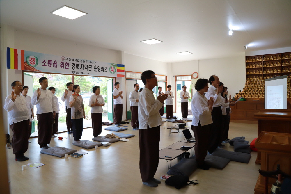 - [경북] 불기2562(2018). 8. 4(토) 11:00 경북불교대학 불광사에서 제8차 운영위원회가 열렸다.운영위원 27명(위임 2명포함)이 참석한 가운데 박돈우 염불포교황련팀장의 집전으로 예불의식을 가진 후 강의수 수석부단장의 포교사의 다짐 등 성원보고, 단장인사, 경과보고 및 감사결과 보고, 안건심의, 공지사항, PIUM, 사홍서원 순으로 진행되었다. 이희철 단장은 “포교원에서 내려와 포교사단 발전을 위한 토론회가 있으니 평소 포교활동하면서 어려운 점, 개선해야할 부분, 정관 개정이 필요한 부분, 정관에 대한 얘기들은 운영위원회때 여러차례 말씀드렸으며 정관이 잘못된 부분이 있다고 생각되면 가감 없이 논의해서 토론회가 잘 이루어져 개선되어 나가길 바라며 더운 날씨에 참석해주신 운영위원들께 고맙고 감사드린다” 고 했다.이어 대한불교조계종 디지털대학 양흥식 교학처장의 디지털대학 교육과정 개편 설명회가 있었으며, 14:00 불광사 설법전에서 이희철 단장 외 운영위원 26명과 대한불교조계종 포교원 포교국장 보연스님, 한성웅 포교사단 수석부단장, 심원섭 전법팀장, 이석심 포교원 차장, 최현호 포교원 전법팀 주임 등이 참석하는 “포교사단 발전을 위한 화쟁토론” 이 개최되었다.간단한 예불의식에 이어 포교국장 보연스님 인사와 이희철 지역단장의 인사, 강의수 수석부단장의 발제 순으로 먼저 경북지역단의 현안인 경북지역단 분단 시 분단금 관련 사항과 팀 활동 중심으로 지역단 소속 변경 등 포교사단 정관 개정에 대한 의견 개진이 있었다.포교사단 발전을 위한 화쟁 토론회