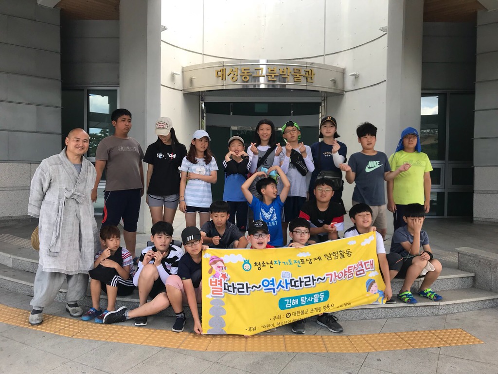 - [울산] 7월 8월 폭염이 기세가 꺽일줄 모르고 기승을 부리고 있다.작년까지만 해도 휴가계획을 세우고는 했는데올해는 수보리팀 활동계획을 세운터라 7/29 ~ 7/31 2박3일 일정으로 재적사찰 황룡사 정말잘돼 천진불들과 김해 별따라 역사따라 자기도전 역사탐험 봉사활동을 다녀왔다.신어산 야영장에 텐트를 설치하고 주변일대 김해천문대, 테마공원, 김수로왕능, 허황후능, 유적지와 요즈음 부각되고 있는 가야 철기문화 유적지 고분군 역사 탐사 활동인데 가야문화가 신라 만큼이나 거대하다는 것을 새삼 느껴보는 시간이었다아이들의 안전문제와 차량이동을 담당했는데 집을 떠난 아이들이 스스로 요리하기 텐트치기 정리정돈 탐험활동 결과를 친구들과 토론을 하며 발표까지 대견스러웠다.어릴적부터 자립심을 키워주는 너무좋은 프로그램 이며 황룡사에서는 8년전부터 해마다 다른 테마를 선정하여 어린이 청소년을 위한 자기개발 할동들을 진행 해오고 있다.황룡사 황산 주지스님의 탁월한 포교력과 담당지도 교사의 프로그램 개발노력에 찬탄을 드린다.아이들 덕분에 역사공부도 새삼하게 되었고 봉사 팀 활동을 할 수 있는 뜻깊은 시간이었다.우리나라 각 사찰에서도 시대의 변화 흐름에 맞게 우리불교의 미래를 위해서 어른들의 앞서가는 지혜를 모아 아이들에게 인적 물적 투자를 아끼지 않아야 할것이다._수보리팀 자안 이성열_