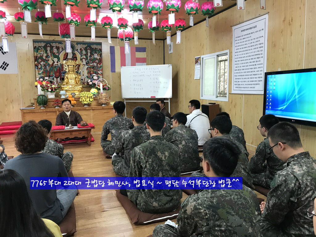 부처님 오신날, 군포교 문수팀 7765부대 2대대 혜민사 법당 풍경입니다.