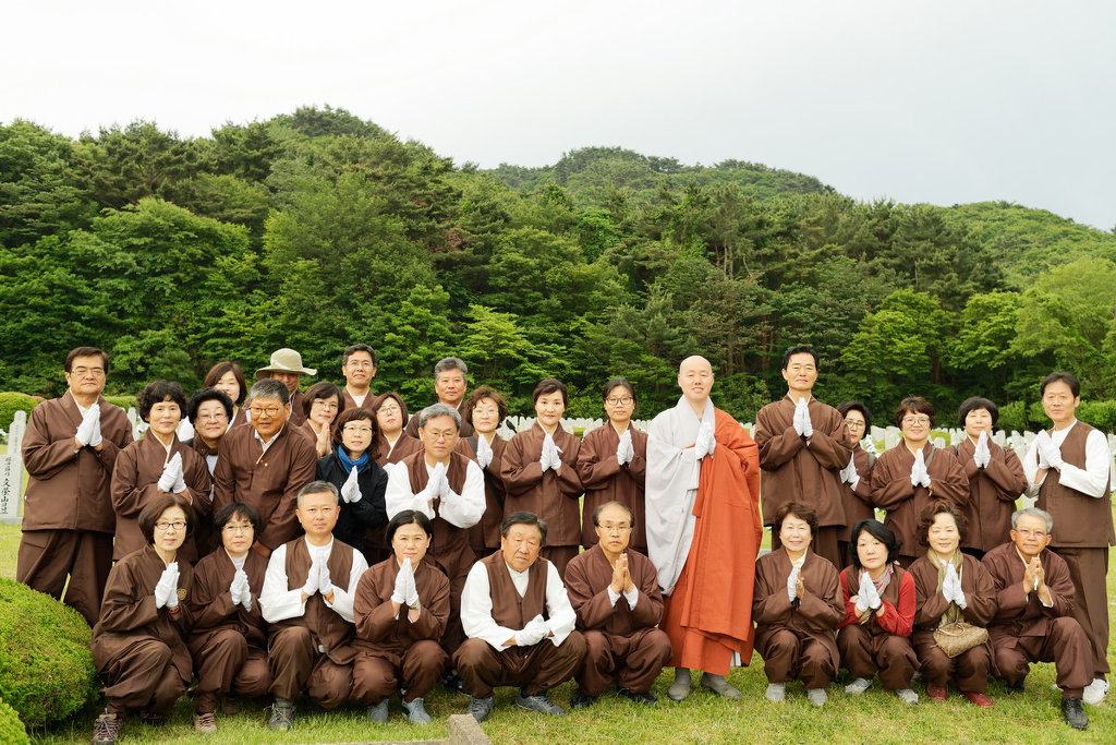 - [제주] 불기2562년 6월3일(일요일) 오전6시 제주시 충혼묘지에서 제주지역단 제주시총괄팀(팀장강윤호) '현충일위령법회'가 제주시총괄팀 23기 1차합격자 및 포교사들이 참여한 가운데 순국선열과 호국영령에 대한 묵념을 시작으로 삼귀의, 반야심경, 아미타불정근, 발원문 낭독, 사홍서원으로 법회를 봉행하였습니다. 법회 후 각 묘비를 돌면서 광명모래를 뿌리고 애국선열들의 숭고한 뜻을 기리며 극락왕생을기원하였습니다. 지난 2006년부터 매년 현충일을 맞아 이른 아침에 충혼묘지를 참배하고 위령법회를 봉행하고 있는 포교사들은 불교가 가장 융성했던 신라시대 호국불교의 참뜻을 되살려 호국영령들의나라 사랑하는 마음을 되살리고자 위령법회를 시작하였고, 앞서 깨끗한 모래에 광명진언을 염한후 이 모래를 부처님 상단에 올려 놓았다가 위령법회 때 호국영령들의 묘비 앞에 뿌리는 의식을 봉행하고 있습니다. 모래를 묘비 앞에 뿌리는 것은 애국선열들이 지혜와 자비광명으로 무명과 업장을 걷어내고부처님의 가피를 입어 극락정토에 다시 태어나기를 소망하는 간절한 마음이 담겨 있습니다. 호국영령이시여 극락왕생하소서_()()()_