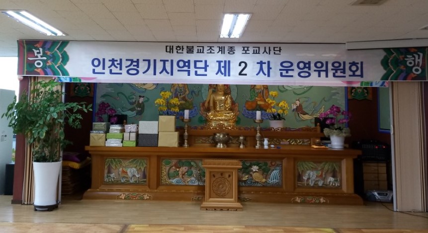 - [인천경기] 제4차 운영위원회 회의 포교사단 인천경기지역단은 불기 2562(2018)년 4월12일 목요일 오후7시 지역단 사무실에서 제4차 운영위원회 회의를 운영위원 26명이 참석하여 배동학 수석부단장의 사회와 백순심 부단장의 집전으로 삼귀의,한글반야심경봉독, 포살법회, 단장인사말, 경과보고, 안건심의, 임명장수여, 공지사항, 사홍서원 순으로 진행 하였다.붓다로 살자 실천 계획의 일환으로 포교원에서 제작한 포살법회 의식집으로 운영회의에서 처음으로 모두 같이 합송하는 것으로 포살법회를 봉행 하였다.신호승 단장은 인사말에서 열심히 해주셔서 감사하다. 과욕하지 마시고 팀원들간의 갈등 초래하지 않고 원만한 팀활동이 되도록 노력해달라 당부 하셨다.꽃샘추위와 봄꽃 향기, 변덕스러운 날씨에도 많이 참석해 주시어 여법하게 회의를 마쳤다.