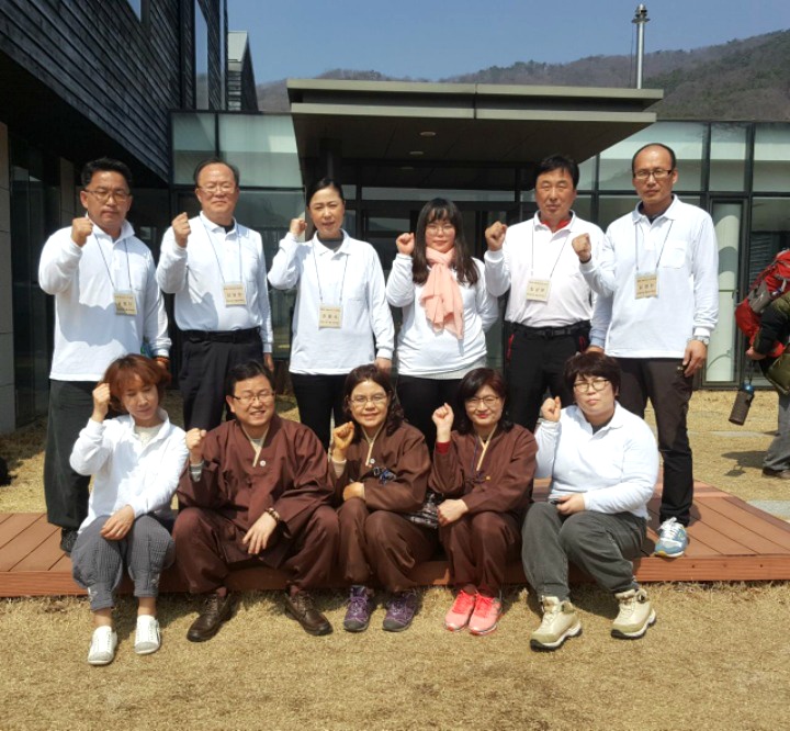 - [부산] 포교원 고시 1차 합격자 불교 문화원 연수교육일시 : 불기 2562년(2018년) 3월24일(토요일) ~ 25일(일요일장소 : 충남공주 불교 문화연수원 부산지역단 (자재천) 정분남 단장님 (도일) 진상근 NGO 본부 총괄팀장부산지역단 1차 합격자 37명 참석3월24일 미 참석자 11명 : 3월31일 ~ 4월1일 교육참석 : 공주 불교 문화원1차 합격자 연수교육집전 및 목탁습의 교육교육을 마치고 부산지역단 단체사진25일 아침 명상 수행자욱한 안개속에서 아침명상 수행을 하고있는 1차 합격자마곡사 대관보전 앞에서 부산지역단 1차 합격자 단체사진 입니다,