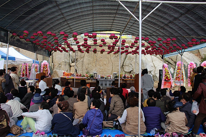 - [경북] 2018. 4. 1(일) 14:00 경북 의성군 단밀면 생송리 낙단보 인근에서 열린 마애보살좌상 관리동 (법당)인 마애사 준공을 기념하는 법회가 봉행되었다. 대한불교조계종 제16교구 본사 고운사 주관으로 열린 법회에는 대한불교조계종 총무원장 설정 스님, 제16교구 교구장 호성 스님, 마애사 주지 원종 스님, 본,말사 주지 스님, 이희철 포교사단 경북지역단장, 김주수 의성군수 등 내외 귀빈들이 참석했다.포교사단 경북지역단장 및 임원, 1차 합격자등은 공주시 한국문화연수원에서 열린 연수 교육후 의성으로 이동, 경북지역단 북부총괄팀(총괄팀장 일범 구덕암)포교사들과 함께 법회에 동참했다. “의성 생송리 마애보살좌상”은 지난 2010.10. 6 낙동강살리기 사업 32공구 공사 현장에서 발견됐으며 고려 초기의 지방화된 양식을 잘 보여주는 마애불로 2011.9.22. 경북도 유형무화재 제432호로 지정되었으며, 전체 높이 213cm, 불상 높이 164cm 크기의 마애보살좌상이다.
