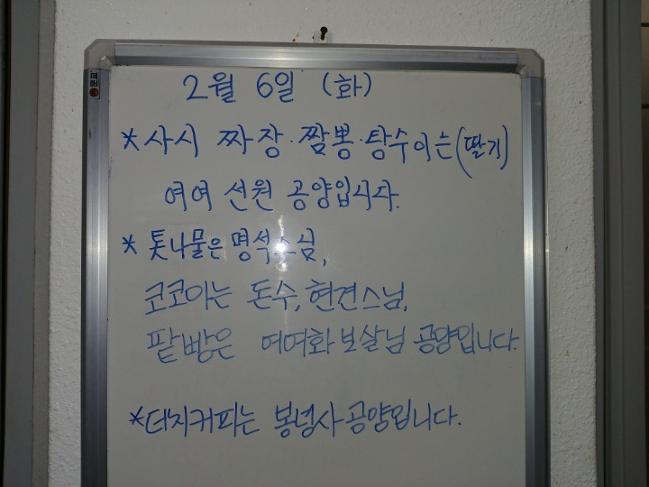 - [울산] 군포교팀 특별 행사( 53사단 군종법사 부임 상견례)| 2월 20일 화요일, 군포교 문수, 보현팀에는 특별한 행사가 있었다. 울산지역 군부대(7765부대)를 총괄하는 부산 53사단 범망 군종법사님께서 새로 부임해 오셨기에 울산 지역단 군포교 문수팀과 보현팀 포교사 12명과 함께 저녁식사를 나누는 자리가 마련되었다. 범망 군종법사님을 소개하자면, 19년차 군종 법사로서 전국을 돌며 군장병 포교를 위해 일을 해 왔고, 소령 계급으로 오셨고, 53사단 자운사가 마지막 임기를 마치는 발령지가 됐으면 좋겠다 하셨다. 고향이 김해라 불심이 깊은 향토에서 군포교팀 포교사들과 함께 열정을 다하고 싶다고 말씀하셨다. 저녁식사를 마친 후, 평소 군장병 포교를 위해 물심양면으로 지원을 해주시는 정토사 덕진스님을 뵙고 새해 인사 드리며 차담을 나누실때, 불교 미래 발전을 위한 어린이, 청소년, 군장병들 포교에 무한한 열정을 아끼지 않는 모든분들께 감사를 전한다 하셨고 우리 포교사들한테도 격려를 아끼지 않았다. 주역에 "同聲相應 同氣相求 동성상응 동기상구" 라는 글귀가 있습니다, "같은 소리를 가진 사람이 서로 만나면 크게 반응하고, 같은 기운을 가진 사람은 서로 만난다." 했습니다. 그리고 봉사는 누구나가 할 수 있지만 아무나 하는 것이 아닌, 외롭고도 험난한 포교사의 길을 걷는 포교사님들이여! 수고많으십니다.^^범망법사님, 덕진스님, 그리고 군포교 선배 포교사들의 포교원력을 본받고, 최선을 다하는 포교사가 될 것을 다짐 해 봅니다.^^군포교 보현팀장 정법설 최문낭 합장 _()_
