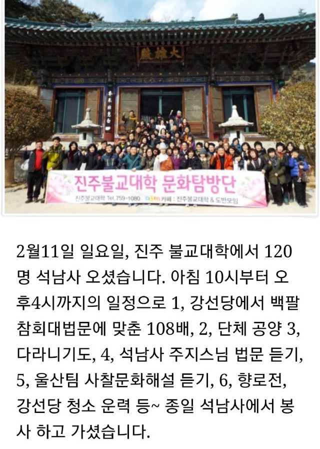 진주불교대학에서 120명 석남사 오셨습니다.^^