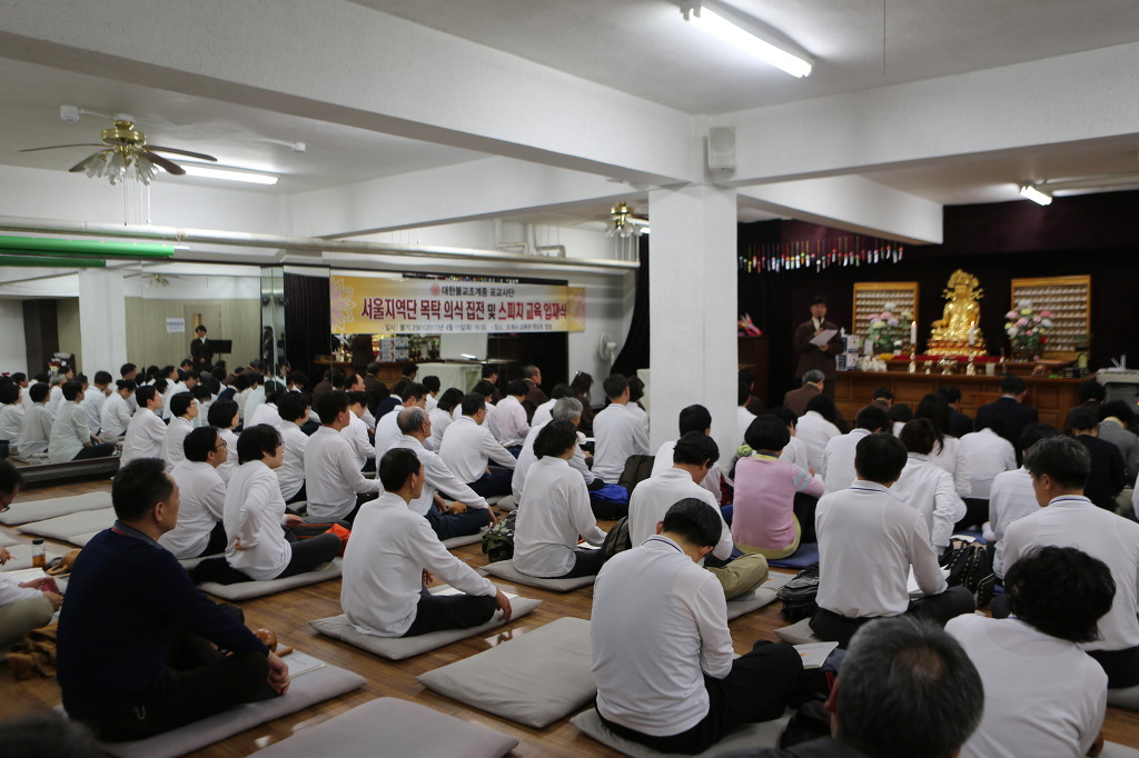 - [서울] 22기 1차 합격자 목탁교육 불기 2561년 4월 11일 화요일 저녁 7시 조계사 불교대학 지하 원심회 법당에서 22기 1차 합격자 목탁교육이 거행되었다. 이번 1차 합격 포교사 중 목탁교육을 신청한 포교사는 총 74명으로 직장인을 고려하여 화요일과 토요일, 일주일에 2번의 교육을 진행한다. 4월 11일 입재식을 시작으로 7월 18일 화요일 수료식을 하는 3개월간의 교육은 스피치 교육에 운파 정건호 포교사, 목탁교육에 성수 서정각 포교사가 강사를 맡았다. 목탁교육에는 목탁의 기초인 잡는 법부터 신호이자 약속인 여러 종류의 목탁 치는 방법에 대해 익히고 예식과 예불에 필요한 목탁을 배우게 되며 최종적으로 시다림 봉사를 갔을 때의 예법과 집전까지 교육을 받는다. 이로써 법문과 집전을 할 수 있는 포교사가 되는 것이다. 혜등 이주영 단장님의 인사말씀과 강사임명장 수여식 그리고 임원소개와 기념사진 촬영이 있었다.