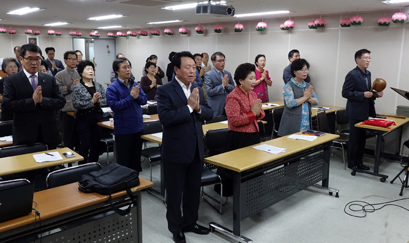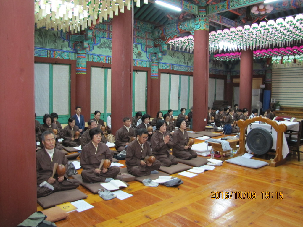 - [제주] 불기2560년 10월28일(금) 오후7시 관음사 설법전에서 오분향례, 칠정례, 반야심경, 청법가, 허운 주지스님 법문, 법종 이남훈포교사의 선창으로 찬불가(고운 님 잘 가소서)를 배우고, 사홍서원 순으로 제주시총괄팀법회를 봉행하였습니다.