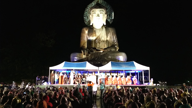 - [부산] 전국 제일의 불교도시 부산연등축제가 2015.5.17 오후6시부터 부산 구덕운동장에서 거행되었습니다. 먼저, 봉축연합법회가 사부대중 2만 여명이 참석한 가운데 봉행되었고, 이어서 7시부터 9시까지 진행한 연등 행열에는 내외국인등 10만 여명이 동참한가운데 온 시민이 마음을 모아 부처님 오신 날을 찬탄하고 저마다 등불을 들고 행진하여 부산 산하 대지가 지혜와 자비의 광명으로 충만한 불국토를 실현하는 하루로 장엄하였습니다. 우리 부산지역단에서는 5월 17일 오후3시 부터 임원 ,운영위원 들이 중심이 되어 구덕운동장에 포교사 접수단을 갖추고 산하포교사들과 금년 예비포교사들을 영접하고 간소한 공양물을 지급하였으며, 향적 강수대 단장은 참석해 준 포교사 들의 평시 포교 봉사활동 노고를 위로하였고,예비포교사 들을 별도로 모이게 하여 이번 행사의 내용을 설명하고 불교 행사 참여도 교육의 일환임을 강조하고 이번 행사에도 끝까지 동참하여 시민 불자가 화합하는 축제 한마당의 홍보자가 되어주기를 당부하였습니다. 이번 행사에는 우리 지역단에서 포교사 311명,예비 포교사 104명이 참석하여 사부대중과 더불어 부처님오신 날을 찬탄하고 포교 일선의 애환을 주고받으며 행복한 하루를 같이 하였고, 지혜와 광명의 등불을 들고 대중들과 행진 대열에 합류하여 밤늦도록 거리행진으로 부처님의 법음이 부산 시민을 넘어 산하대지 동서남북 사유상하의 시방세계로 널리 퍼져 하루속히 전 세계에 불국토가 이루어지기를 염원하였습니다.