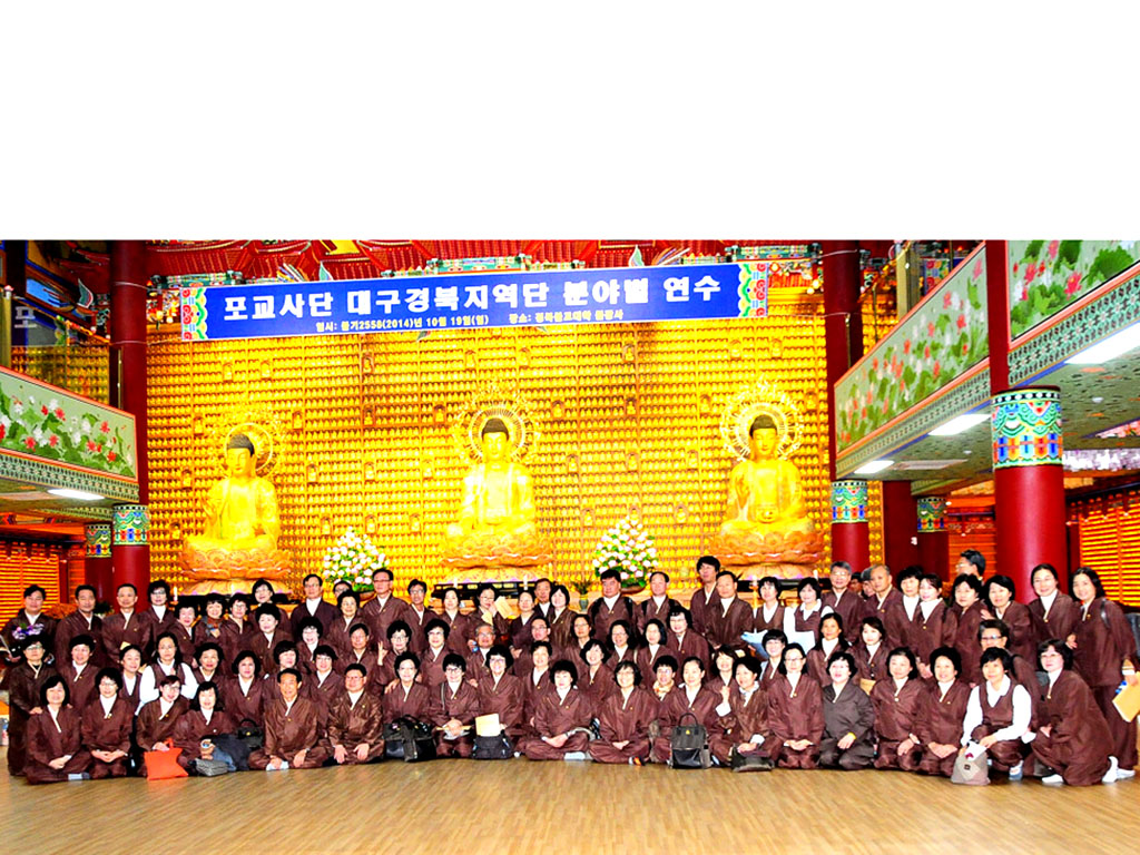 - [대구] 불기2558(2014) 10월19일 대구경북지역단 여광 이용우 지역단장 포교사와 경북불교대학 불광사 주지스님 와 에 찬불가 합창 각 분야별사례발표가 있었다. 지역단분야별 연수를 통하여 포교사로서 사명감을 가지고 활동에 전념하는 포교사가 될수 있도록 다짐합니다.