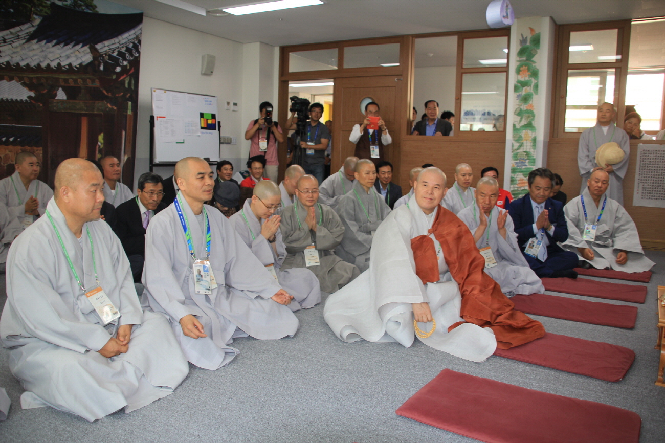 - [인천경기] 2014년 9월 22일 월요일 오전 11시 총무원장 자승스님을 비롯해 조계종 스님들과 각 불교단체 인사들이 인천 구월동 아시아드선수촌을 방문해 아시안게임 참가 선수, 임원들 독려와 불교종교관을 방문해 봉사하시는 분들 격려를 해주셨습니다. 불교관에는 이번 대회 펜싱 금메달리스트 구본길 선수도 방문해 함께 하였고, 체조 양학선 선수도 만나 격려해주시는 시간도 있었습니다. 대한민국의 아시안게임 선전을 기원합니다. _()_