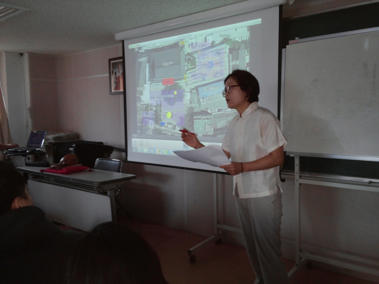 - [서울] 불기2558(2014)년 9월 13일 토요일 오전 10시부터 오후5시까지 대한불교 조계종 불교역사 문화기념관 2층 국제회의장에서 포교자격직 (어린이, 청소년) 지도자 연수를 개최 하였습니다. 삼귀의에 이어 반야심경 봉독 후 사단법인 동련의 재현스님의 간단한 인사말씀에 이어 일정을 소화하기 위해 첫 강의가 바로 시작 되었다. 이 자리에는 전국 어린이, 청소년 지도에 지대한 관심을 가지신 포교사, 상담사, 자격증을 겸비한 100명이 조금 넘는 분들이 참석 했으며 서울 지역단에서도 덕진 정목희 단장, 법용화 한애경 부단장, 원만성 김용희 부단장, 마니행 이명숙 북부 총괄팀장과 혜관 김석두 포교사님 동부 반야지 김소희 팀장, 남부 대륜 권오헌 팀장, 북부 무구 김종현 팀장 등 서울 지역 어린이팀 포교사님들이 참석하여 너무나 열심히 강의에 경청하신 모습들이 거룩하신 부처님 모습이었습니다. 09:30 ~ 10:00 접수 10:00 ~ 10:10 입제식 10:10 ~ 11:40 상담개발원 이사 이신 혜타스님의 청소년 명상 지도 방법론 11:40 ~ 12:10 대한불교조계종 포교원 박성수님의 분야별 어린이 •청소년 네트워크 12:10 ~ 13:00 점심공양 13:00 ~ 14:40 신라대학교 백문현 교수님의 불교문자디자인 14:40 ~ 15:00 휴식 15:00 ~ 16:40 동구대부속여자고등학교 교법사 권진영 미디어포교프로그램 청소년 코칭 방법론 16:40 ~ 16:50 회향식 청소년 명상 지도 방법론에 대해 혜타 스님의 강의 내용을 실어 보고자 합니다. 강의록에 나와 있는 것은 집에서 읽어 보며 충분히 알 수 있을 것이라 하시면서 한 가지라도 더 가르쳐 주고 싶은 스님의 성의에 고마움을 글로 대신 하려 합니다. 어린이, 청소년들에게 활짝 웃는 그림이나 부처님을 보게 한 다음 옆사람과 마주 보고 웃으면서 두 단어로 “당신은 미소가 아름다워서 더 젊게 보입니다” (이 때 열정과 진심을 담아서 인사 해야함) 이런 식으로 인사 나누기 하라 합니다. 명상(冥想) 이란? 판단을 중지한 고요한 마음으로 현재 순간에 의식적으로 주의를 집중 하는 것이다 •팃낙한 스님 “자신의 의식을 지금 현실에서 살아 있도록 하는 것이다.” 예) ①물을 한 모금 마신다. ② 조금 적게 먹고 입안에서 3초간 머금고 있다 물맛을 현저히 느끼고 천천히 목으로 넘기면서 위장에 들어가는 느낌을 느껴 본다.( 이렇게 함으로서 판단을 중지한 상태에서 의도적으로 마음을 입안에 물에 주의집중 한다) 아이들에게 첫 번째와 두 번째 먹었을 때 무엇이 달랐어? 질문해 보고, 괜찮았어? 계속 질문을 던져 주면서 아이들과 느낌을 나눈다. 명상을 하면 좋은 것 •두통, 요통, 협심중의 덜어준다. •혈압을 낮추어 주고 고혈압 치료에 도움을 준다. •불면증을 이긴다. •과호흡증에 대처할 수 있다. •항암효과를 증진 시킨다. •스트레스를 막을 수 있다. •불안과 우울증이 개선 된다. •창의력을 높일 수 있다.(2007년 하버드대 밴슨,하버드대 심리학 연구소 발표자료) 청소년들이 경험하는 명상효과 •주의집중력이 좋아진다. •사고력이 활성화 도어 창의력이 높아진다. •기억력이 향상 된다. •정서조절 능력이 향상된다. ★명상을 하면 머리가 좋아진다. •명상을 하면 머리가 몸의 산소 소비량이 20% 정도 줄어든다. •왜요? •깊은 호흡으로 심장박동이 줄고 피의 흐름이 느려지기 때문 •그래서요? ★명상으로 왜 머리가 좋아 질까요? - 몸속에 남겨진 20%의 산소를 뇌에서 사용하게 되므로 뇌 속의 혈류량이 늘어나게 되어 머리가 활발하게 기능하게 되어 머리가 잘 돌아 가게 된다. ★호흡명상 •들숨과 날숨을 관찰하는 수행법이다. •호흡명상으로 마음이 고요해지고 평온해지면서 행복이 자연히 뒤 따라 온다. •마음이 본래 자연 상태가 “행복” 하기 때문이다. ※ 3.21 로 행복해진 당신이 보입니다♡ 초보자는 눈 감는다. 아니면 눈을 조금 떠도 된다. 부처님 눈으로 •호흡이 들어감과 나감을 알아 차린다. 1일 3회 한다.(꼭 하세요) 21은 3.7은 21일 동안 꾸준히 하면 자기 습관이 된다. •들숨 날숨 3번 하는 이유 마음이 가라 앉아 고요해진다. 마음이 가라 앉으면 차분해지고 편안해 진다. 고요하고 차분해지면 끝은 행복이라는 마음이 있다 행복을 알아차리며 그 자리에 있다. 마음속 본래 자리가 행복이다. ♣불교의 심리학에서는 느낌의 발생을 접촉으로 설명한다.(염처경) 예) 악수해라 •몸 느낌의 변화 과정을 생생하게 경험함으로서 마음에 미묘한 변화를 인식할 수 있게 된다. •마음이 생성, 변화, 소멸을 알아차릴 수 있게 되는 것을 잘 관리 할 수 있다는 뜻이다. “어둠속에 보물이 있다 해도 등불 없이는 못보는 것처럼 부처님의 가르침을 설하는 사람이 없으면 지혜로와도 깨닫지 못한다.”(화엄경) “이제 너희들에게 부촉하노니 너희들은 마땅히 마음을 다해서 부처님 가르침을 전해 널리 알리도록 하라.”(법화경) 취재 / 홍보팀 보광화 김현숙
