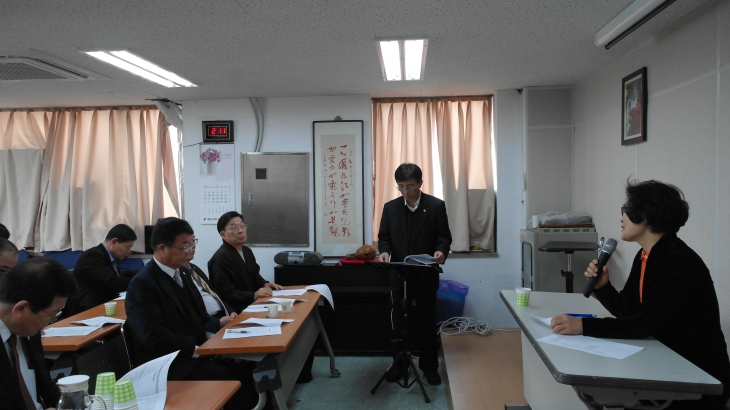- [포교사단] 불기2558년 제2차 포교사단 임원회의 포교사단(단장 곽명희 포교사)은 불기2558년 3월 27(목) 제2차 임원회의를 포교사단 교육관에서 개최했다. 윤기중 수석부단장 사회로 진행된 회의는 삼귀의와 반야심경에 이어 의장 인사, 포교부장 송묵스님 격려사, 전 회의결과 및 활동 보고, 안건 심사 및 공지사항 순으로 진행 되었다 곽명희 단장은 인사말에서 “봉축행사와 신규포교사 교육으로 어려운 시기이라며 모든 일을 본단과 포교원에 긴밀하게 협의해 줄 것을 당부했다. 이어 포교원 포교부장 송묵스님이 격려차 참석하여 ‘사회적 환경변화에 적극 대처하는 포교전략’을 설명하는 시간을 가졌다 이어 전 회의결과와 활동 보고를 마치고 후 본안 심사에 들어가 제1호, 입단비 미납자 자격 심의 → 정관대로 시행 제2호, 생명나눔실천운동본부 사업제안 → 지역단별 협의 후 차기 회의에서 심의로 수정제안 제3호, 자비나눔 실천팀 결성 → 자비나눔 실천 일인오화 참여로 수정제안 제4호, 포교사단 해외연수 → 집행부서 구체적 시행방안을 마련하도록 위임 제5호, 전직 단장을 본단 차원에서 친목회 결성하는 방안을 심의했다 회의는 공지사항에 이어 사홍서원을 끝으로 원만회향했다 기사/사진 : 정책전문위원 도광 한성웅