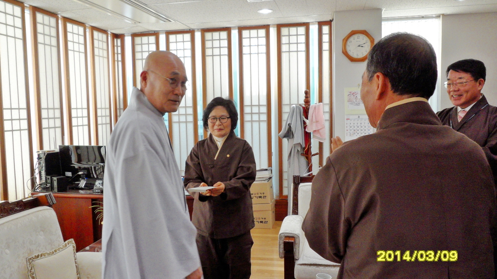 - [포교사단] 2014년 3월 9일(일) 오후 1시 30분부터 한국불교역사문화기념관 지하2층 전통문화예술공연장에서2014년 대한불교조계종 포교사단 대의원총회가 진행되었습니다.의장은 곽명희 포교사단 단장이고, 사회는 윤기중 포교사단 수석부단장이었으며 포교부장 송묵스님께서 법문을 해 주셨습니다.안건은 2013년 사업결산 승인의 건, 2014년 사업계획 및 예산 심의의 건, 울산경남지역단 분단의 건, 세개가 상정되었으며, 모두 결의되었습니다.