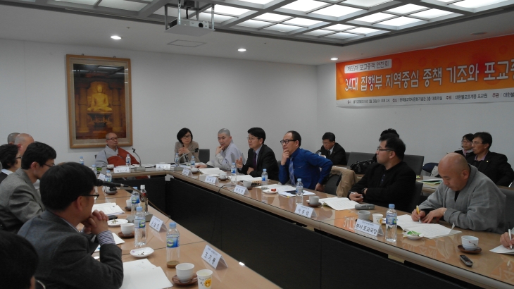- [포교사단] 대한불교조계종 제55차 포교종책 연찬회 - 지역포교 활성화로 세상의 빛이 되자 대한불교조계종 포교원(원장 지원스님)은 3월 26일 오후 2시 한국불교역사문화기념관 2층 대회의실에서 ‘34대 집행부 지역중심 종책기조와 포교종책 과제’를 주제로 제55차 포교종책 연찬회를 개최했다. 회의는 포교원 연구실장 법상스님 주재와 윤영희 포교차장의 사회로 삼귀의와 반야심경 봉송으로 시작되어 각 주제별 발제로 이어졌다. 조계종 이석심 총무차장은 ‘지역중심 34대 집행부 포교종책 과제와 전망’ 발제에서 “우리사회가 민주적 의견수렴과정 생략으로 갈등증폭에 따른 사회적 비용이 필요하게 되었다.”고 진단하고 “이제는 통치(統治)의 개념보다 협치(協治)의 개념이 더욱 중요한 시대이기 때문에 지방의 자율성이 더욱 존중돼야”면서, “중앙․교구 균형발전을 실현하기 위해서는 ‘지역포교 및 지역불교 활성화’를 통해 교구가 지역사회 중심으로 자리매김하도록 해야 한다.” 이를 위해 △중앙ㆍ교구 발전위원회 구성 및 운영 △교구의 행정시스템 구축 △말사주지인사 교구 이양 및 교구인사제도 개선 △승려복지 제도의 정착 및 시행 △기초자치단체인 시․군․구 기준으로 지역포교 및 지역사회사업 전개 △교구관할구역 획정 및 직할교구 권역별 관리 △종무인력 양성 및 교구와의 순환교류 △수도권 포교활성화 등의 시스템을 체계적으로 마련하는 방안을 해결책으로 제시했다. 또 “지역사회 불자(구성원)에 기반한 교구 중심으로 교세 확장이 이뤄져야 하며, 이것이 지역포교 및 수도권 포교 활성화의 귀착점”임을 강조했다. 이어 조계종 포교국장 노휴 스님은 ‘지역전법 토대 구축과 지역포교 활성화 방안’을 주제에서 발제문을 통해 “지역포교를 활성화하기 위해서는 교구를 관할하는 교구본사와 사찰이 중심이 돼야 한다”며 “이를 위해 지역을 중심으로 포교단체와 신도단체의 조직과 인력현황을 파악하고 포교인적 네트워크를 형성하는 것이 우선적 과제”라고 주장했다. 또 사찰 실존 근거가 지역인 만큼 “지역과 소통하며 지역민의 삶의 질을 높이는데 기여하기 위한 방안으로 △주기적인 교육과 수행, 신행프로그램 마련 △사찰의 문화를 지역민이 향유할 수 있는 개방된 시스템 구축 △불교의 정신문화적 가치로 복지와 교육, 치유의 장을 위한 문화프로그램을 마련하고, 지역 활성화를 위한 종단 과제로는 △교구본사 중심 포교조직 네트워크 구축 △포교콘텐츠 개발과 보급 △포교인력 양성과 지역조직 확대 △총무원, 교육원과의 통합적 추진 △지역불교활성화를 위한 실행단위 구성 등을 대책으로 제시했다. 중앙신도회 불교사회적경제 지원본부 박주언 본부장도 ‘사찰의 지역공동체 창출과 네트워크 구축방안’ 발제문에서 “지역공동체 활성화의 성과는 지역포교의 활성화로 이어진다”며 이웃종교와 불교계에서 진행되는 사회적기업, 협동조합, 마을기업 등의 사회적경제의 다양한 사례를 분석하고, “도심사찰에 기반한 사회적 경제조직과 지역사찰의 사회경제적 조직간 교류를 통해 지역공동체 사업 창출과 네트워크 실현으로 도심사찰과 지방사찰간의 불균형을 해소하고 동반성장할 수 있는 고리를 만들어야 한다”고 주장했다. 토론자로는 박재현 월정사 종무실장이 ‘지역중심 34대 집행부 포교종책 과제와 전망’ 이준엽 호남불교문화원 실장이 ‘지역불교가 살아야 한국불교가 산다’ 동화사 포교국장 미수스님이 ‘지역중심 포교종책과제 교구중심제 지역연합회 등 종단의 지역중심사업 연계성 확보’, 곽명희 포교사단장의 ‘지역전법 네트워크 구축에 따른 포교사단 역할과 참여방안’, 조기룡 동국대 불교학술원 조교수의 사찰의 ‘지역공동체 창출과 네트워크 구축방안에 대한 논평’, 윤남진 소셜리서치 멘토르 대표가 ‘사찰의 지역공동체 사업창출에 대한 토론문’을 발표했다. 포교원 연구실장 법상스님은 결론에서 “사회가 불신시대, 자존감이 충만한 시대이지만 그것을 융화시킬 수 있는 방법은 부처님의 가르침을 바탕으로 믿음이 확고하게 서야한다”면서 “불교적 신앙을 바탕으로 좋은 사회를 이루어야 하는 만큼 오늘 토론을 발판으로 좋은 종책이 마련되도록 노력하겠다”는 말로 연찬회를 마쳤다. 기 기사/사진 정책전문위원 도광 한성웅(shaddhan@hanmail.net)