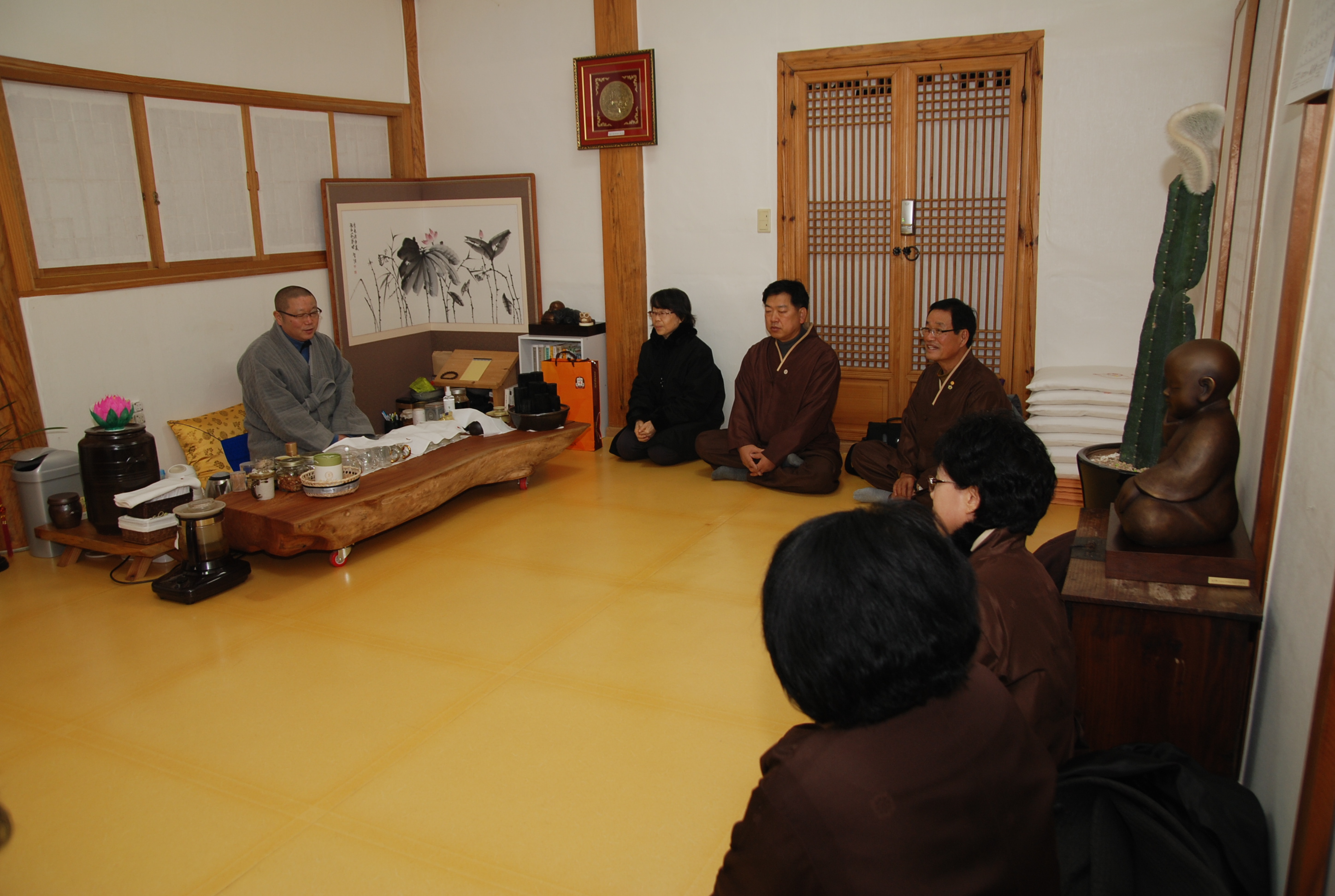 - [경남] 울산경남지역단 진주지역총괄팀은 8일 갑오년 정초 세알을 위해 법보종찰 가야산 해인사를 방문 주지 선해 큰 스님을 뵙고 법문을 받아 지녔다. 세알에는 진주지역 통현 이상운 총괄팀장을 비롯한 13명의 포교사가 동참했으며, 입춘이 지났음에도 불구하고 포교사들을 반기듯 내리는 봄 눈으로 보는 즐거움을 만끽했다. 자력의 힘을 키우면 이타는 저절로 생겨난다. 존재감과 자부심을 갖고 힘 있을 때 포교에 진력하라 대적광전옆 선설당에서 포교사들을 반갑게 맞이해준 주지 스님은 사중에서 직접 만든 무우차와 딸기를 내어주시고 특별히 많은 시간을 할애해 주셨다. 이날 포교사단 임원연수 관계로 참석치 못한 선행심 이문자 지역단장의 빈 자리는 사무국장(혜안.강신)이 대신하였으며, 같은 시간 통도사 큰 스님 세알에는 창원지역총괄팀 포교사들이 동참하여 뜻 깊은 시간을 가졌다. 해인사 주지 선해 큰 스님 아주 정갈하게 차려진 무우차 한 잔과 과일 한 조각 선설당앞에서 인증사진 종각앞에 꾸며진 화엄일승법계도 위로 하얀 눈이 소복이 내렸다. 내려오는 길에 해인사 일주문 주련의 글을 되새겨본다. 歷千劫而不古(역천겁이불고) : 천겁을 지나도 옛날이 아니요 亘萬歲而長今(긍만세이장금) : 만세를 뻗쳐도 항상 오늘 불기2558(2014)년 2월 8일 눈 내리는 해인사에서 혜안