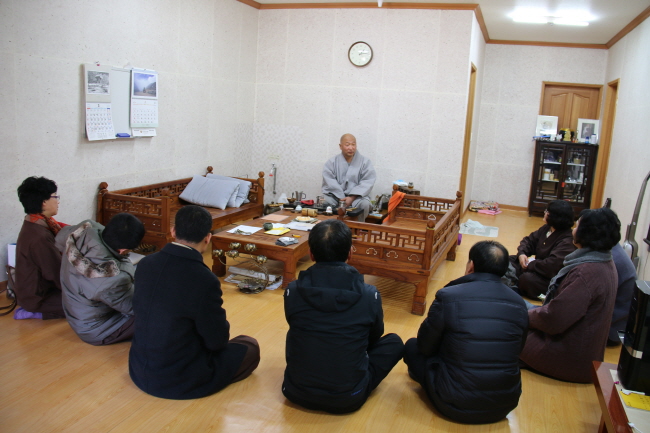 - [인천경기] 2014년 2월 8~9일 경기도 양주시 도리산 육지장사에서 1박2일간 인천경기지역단 임원 및 운영위원 연수가 있었습니다. 이 날은 총 참석 대상자 35명중 29명이 참석해 인천경기지역단의 뜨거운 열정을 확인할 수 있는 자리가 되었습니다. 이 날 행사는 입재식에서 포교원장스님이신 지원스님께 세알을 하고 법문을 듣는 것으로 시작해 곽명희 포교사단장의 포교사단 정책방향을 듣고 이어서 포교국장이신 노휴스님으로부터 리더십강의를 청해 들었습니다. 강연이 끝난 후 인천경기지역단 4개의 총괄팀별로 모여 지역단 활성화 방안과 발전방안등을 토의해 발표하는 시간을 갖고 운영위원회의로 일정을 마쳤습니다.