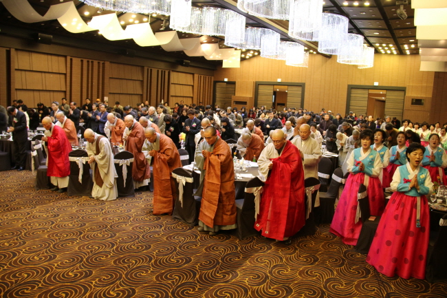 - [경남] 대한불교조계종 포교사단 울산경남지역단장 (선행심 이문자)은 불기 2557년(2013) 12월 14일 (토) 17:30부터 22:00까지 창원 풀만 앰배서드 호텔 로터스홀에서 2013년 울산경남지역단 포교사 전진대회 및 12월 정기운영위원회의를 다음과 같이 봉행했다. 제1부는 울산경남지역단 지난 2년간 포교활동 영상을 혜안 강 신 포교사 해설로 진행 시청하였으며, 제2부는 개회선언, 삼귀의, 한글반야심경, 포교사의 다짐, 지역단 발자취, 내빈 및 임원 소개, 환영사, 축사, 청법가, 법문, 포교사 전진대회 포상 및 공로패 수여, 포교사의 노래, 공지사항, 사홍서원순으로 마무리하였고, 특히, 통도사 부주지 재원 큰스님, 울산시 정토사 주지/ 울산시 사암연합회장 덕진 큰스님, 포교원 신도국장 덕산 스님, 통도사 포교국장 울산경남지역단 지도법사 선본 스님, 포교사단 부단장 심재덕, 포교사단 부산지역단장 강수대, 대구경북지역단장 장한상, 포교원 행정관 박맹수께서 참석 자리를 빛내주시고 원력을 갖고 포교활동 할 수 있는 격려와 성원을 아끼지 않았다. 제3부는 저녁공양, 축하케이크 커팅, 포교사 노래 및 장기자랑, 축하공연(꿈앤꾼 악단), 행운권 추첨, 최다 참석팀 포상으로 원만하게 회향했으며, 이어서 2013년 12월 정기운영위원회를 제8대 운영위원 임명외 1건, 기타토의, 공지사항 등 강행군이 끝났다. 사진/글 : 대한불교조계종포교사단 울산경남지역단 자원봉사행원팀 중앙홍보위원 덕산 이승선