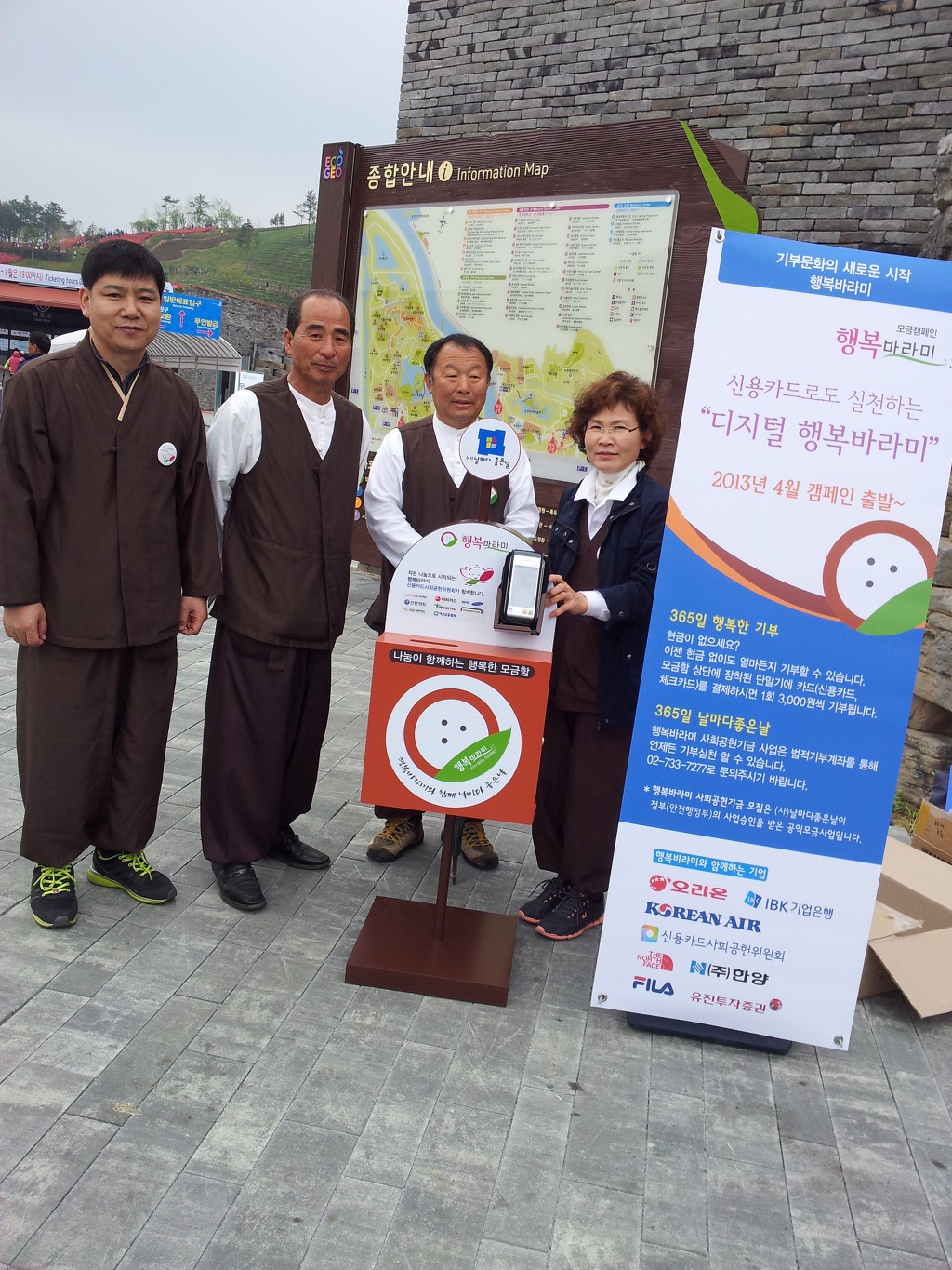 - [부산] 포교사단 부산지역단 기부문화의 새로운 시작 행복바라미 모금운동 신용카드로 결제하는 "디지털 행복바라미" 일시 : 불기 2557년 (2013년) 5월7일 장소 : 부산지하철 범어사 5번출구 앞 노상 포교사단 부산지역단에서는 기부문회의 새로운 시작 행복바라미 모금운동을 )법지행) 이숙례 지역봉사 총괄팀장을 팀장으로하여 오후 2시부터 오후 5시까지 지하철 범어사역 5번출구 앞에서 열심히 모급운동을 하고 있었다 아직 행복바라미에대한 홍보 부족과 시민들의 냉대한 마음에 모금은 잘 이루어 지지 않았지만 그 열정만은 대단한 감동적이었다 , 범어사에서 내려오는 불자들을 대상으로 부지런히 홍보하고 모급운동을 하였으나 그 결과는 아주 미약하기 그지 없었다, 또한 모금을 하고있는 포교사들은 길거리에서 홍보용 프랭카드도 없고 책상도 하나 없으며 몇시간을 서서 지나가는 시민들에게 행복바라미에 대한 홍보를 하였지만 그 수입금은 아주 저조하였다 다음에 또 이런 행사가 있으면 충분한 홍보를 하고난 뒤 시민들에게 공감을 주는 모금이 되었으면 한다 몇시간을 지켜보고 난 뒤 그 모습을 전합니다,