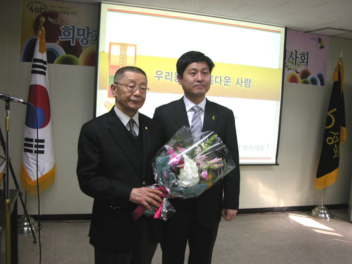 - [좋은인연] 성북구 안암동 주민센터 2013년도 신년회가 1월 16일 14시 안암주민센터 4층 회의실에서 있었다. 안암동 주민센터 직원일동과 성북구청장, 시의원 구의원, 암암동 주민 대표가 모인 가운데 신년회가 치러졌는데, 사)좋은인연에서는 임희웅 이사장과 곽명희 복지위원이 참석하였다. 사)좋은인연은 안암동 주민센터로부터 사)좋은인연의 활동발표를 부탁받고 자료를 준비하여 이 자리에서 그동안 시행해 온 사업들을 소개하였다. 이 자리에서 사)좋은인연이 소개된 이유는, 그동안의 사업들이 안암동 주민센터와 연계한 사업들이 많았기 때문이다. 사진을 활용한 설명 등의 영상으로 간략하지만 핵심 있게 잘 설명되었다. 김장나누기, 떡국나누기, 독거노인들에게 전기매트 전달하기, 어르신 나들이 행사, 안암천 주변의 환경미화, 노인의집 방문, 독거노인 가정 방문하기, 이런 대부분의 사업들을 암암동 주민센터와 연계하여 시행해 왔다. 이날 김영배 성북구청장은 임희웅 이사장에게 감사의 꽃다발을 선사하며 앞으로도 어려운 이웃을 위해 지속적인 활동을 펼쳐줄 것을 부탁하였다.