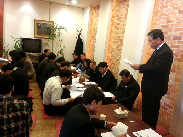 - [광주전남] 1월19일(토) 2012년 후반기 정기감사가 10시부터 지역단 사무실에서 오후 1시 까지 이루어졌다. 이번 감사는 2012년 후반기 동안 지역단에서 이루어졌던 제반 사업전반과 예산운용 전반에 대한 감사가 이루어졌다. 오후 2시부터 는 새해 들어 첫 번째 실시하는 운영위원회의가 운영위원 31명이 참석한 가운데 열렸다. 법진 정영균 단장은 인사말에서 지난해 운영위원님들을 비롯한 단 전체의 회원이 물심양면으로 협조하여 주신 덕분에 큰 행사인 팔재계등 큰 행사를 무사히 잘 치룰 수 있었음에 대한 감사와 격려를 서두로 하여 특별히 그리고 이성수.백남용 전임 단장( 운영위원회 고문)에 대한 감사의 인사도 빼지 않았다. 오늘의 회의는 년말에 있었던 전진대회 결과보고. 2012년 년말 결산보고, 2013년도 예산 및 사업계획에 대한 심의 의결이 이루어졌으며, 기타 협의사항으로 단비 인상에 대한 토론과 팀활동 활성화와 팀 재편성 등 지역단 포교활동 전반에 대한 다양한 의견들이 제시 되여 열띤 토론이 이루어 졌다. 이어서 오전에 있었던 감사에 대한 감사보고가 전상길, 김남용 두분의 감사보고가 있었으며 기타 공지사항을 끝으로 회의를 모두 마쳤다.