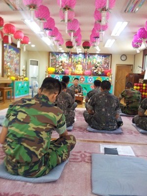 - [광주전남] 8월12일 장성군 진원면 1705부대(전차부대) 군 2팀장 보조 정순갑 팀장이 주 관하는 법당에서 부대 장병불자 50여명이 참석한 가운데 일요 정기 법회가 여 법하게 열렸다 . 오늘의 법회에는 우리 지역단 범진 정영균 단장과 홍보,사무지원팀장 정성행 강막례 팀장과 보현행 채순이 포교사가 동참하여 우수 팀활동 격려차 참석하였다.범진 단장은 설법에서 올바른 신앙관과 불자로써의 기본 상식과 법회에 참석한 병사들을 칭찬 격려하였으며 불상에 대한 가장 기초적인 상식을 알기 쉽게 설명하는 등 군 법당 진행에 대한 조언을 아끼지 않았다.그리고 장병들에게 피자와 수박 등 다과를 제공하고 함께 공양하였다.