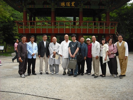 - [포교사단] 6월 16일 (토) 금년도 팔재계 실시를 위한 사전 방문차 중안단 임희웅 단장과 곽명희 수석 부단장.서울지역단 계영석 단장과 중앙단 사무국 직원 ,우리지역 단장 정영균과 금년도 팔재계준비 지원단장을 맡은 김정연 수석부단장, 장송기 팀장, 김경영 자원봉사 팀장, 강막례 홍보팀장, 윤경숙 간사등은 광주 역에 도착한 중앙단 임원들과 합류하여 장성 백양사를 찾았다. 오후 1시30분 백양사에 도착하여 고은 포교국장스님의 안내로 시몽 주지스님을 친견하고 금년도 팔재계 실시에 대한 개요 설명과 사전 준비 등 진지하고 흔쾌한 협의와 환담을 나누었다. 오늘 이 자리는 금년도 팔재계 행사가 다른 해 팔재계 행사보다 성공적으로 치루어 질 수 있겠다는 좋은 예감이 들만큼 화기 애애한 가운데 협의와 시몽 주지스님의 덕담이 이어졌다. 주지스님 방에서 차담과 협의가 끝난 다음 주지스님께서 쌍계루까지 나오셔서 루에 올라 그곳에 빼곡이 게시된 400여편의 시조와 한시에 대한 상세한 설명까지를 해 주셔서 이제까지 알지 못하던 쌍계루에 우리 사부대중들의 문화와 역사가 깃들어 있다는 새로운 것을 알게 되는 좋은 기회가 되었다. 주지스님과의 친견을 마치고 행사가 이루어질 현장을 다시 한 번 둘러보고 오늘의 일정을 모두 마쳤다.