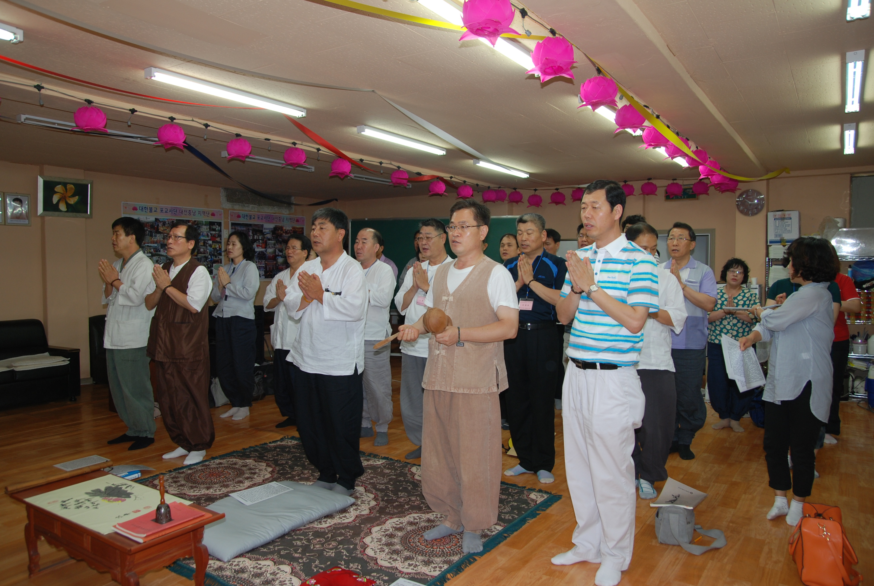 - [대전충남] 대전, 충남지역단은 불기 2556(2012)년 6월30일 (토) 10:00 ~17:00까지 대전 지역단사무실에서 제17회 포교사고시 필기시험 1차 합격자 면담평가 대비 최종 점검 교육이 있었다. 오전 10시 입재식을 시작으로 강종효단장은 7월7일 대비 교육인만큼 잘 마무리하여 100% 합격하길 바란다는 말씀과 함께... 이어서 서남교 교육위원의 팔정도... 최종대 총괄팀장의 목탁습의... 최종 마무리는 강종효단장의 면담평가로 오후5시에 마무리하였다. [사진, 글 : 대전, 충남포교사 홍보위원 지혜지]
