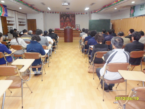 - [경남] 대한불교조계종 포교원은 불기 2556(2012). 4.21.(토) 13:00~4.22.(일) 12:00까지 직지사 만덕전에서 울산경남, 부산, 대전충남 지역단 제17회 포교사고시 1차합격자 240여명 중앙 연수교육을 봉행했다. 첫날은 삼귀의, 한글반야심경, 포교사단 정혜 임희웅 단장 격려사, 직지사 주지 성웅 큰스님 입재사, 성웅 큰스님으로부터 죽비 하사 및 청규 시달, 포교사단 임희웅 단장 포교사단의 이해, 권중서 전문포교사 불교문화 이론과 해설, 직지사 스님 주관 108배, 대한불교조계종 포교원 포교국장 남전 스님의 불교교리이해1, 2 특강으로 1부 진행되었으며, 둘째날은 아침 예불, 108배, 대한불교 조계종 포교원 포교국장 남전 스님의 참선, 대한불교조계종 교육원에 재임중인 법안 스님 불교의식의 이해, 접전 교육 열강에 이어 대한불교조계종 통도사 포교국장 묘경 스님의 지역활동 포교사 역할 에 대한 특강, 제17회 포교사 고시 1차 합격자 포교 발원문 작성, 사홍서원 순으로 포교원 연수교육을 실시 했다. 특히, 교육기간 중 울산경남 지역단 선행심 이문자 단장, 부산 지역단 향적 강수대 단장, 대전충남 지역단 원명 강종효 단장 등이 참석하시어, 원만하게 회향 할 수 있도록 자리매김을 하였다. 사진/글 : 덕산 이승선 울산경남지역단 자원봉사 행원팀/ 포교사단 홍보위원 lss5464@hanmail.net