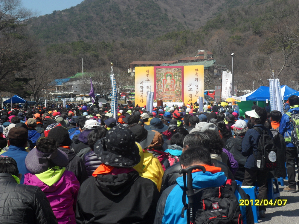 - [포교사단] 2012 포교결집대회 국태민안 등반대법회 일 시 : 불기 2556년 4월 7일 토요일 오전 10시~오후 5시 장 소 : 동학사 주차장 특설법단및 계룡산 일대 주 최 : 대한불교조계종 포교원 법회참가인원 : 임희웅단장과 계영석 서울지역단장및 포교사 2000여명과 일만여 불자 포교사단 봉사 지역단 : 130여명의 대전충남 지역단 등반코스 : 동학사출발 ~ 갑사 취재 : 남부총괄팀장 한애경 법용화
