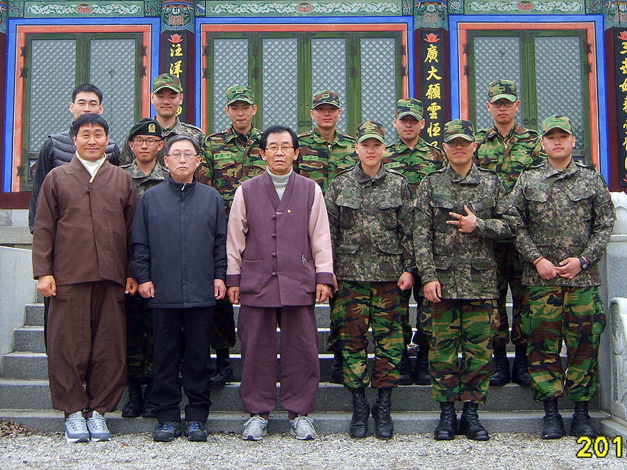 - [광주전남] 3월 18일(일) 보병 제 96연대 호국사자사 장병불자 20명은 모처럼만의 바깥 나들이에 나섰다.무안군 해제면에 소재한 용덕사 대웅전에서 문용주 포교사의 집전으로 범진 정영균 단장과 대공 방순량 팀장이 함께하여 여법한 법회가 이루어졌다.주지 스님과 이 절의 창건주이신 노스님의 따뜻한 영접과 정이 듬뿍 담긴 점심 공양은 장병불자들에게 또 이런 현지 사찰 법회에 대한 기대를 갖게했다 .